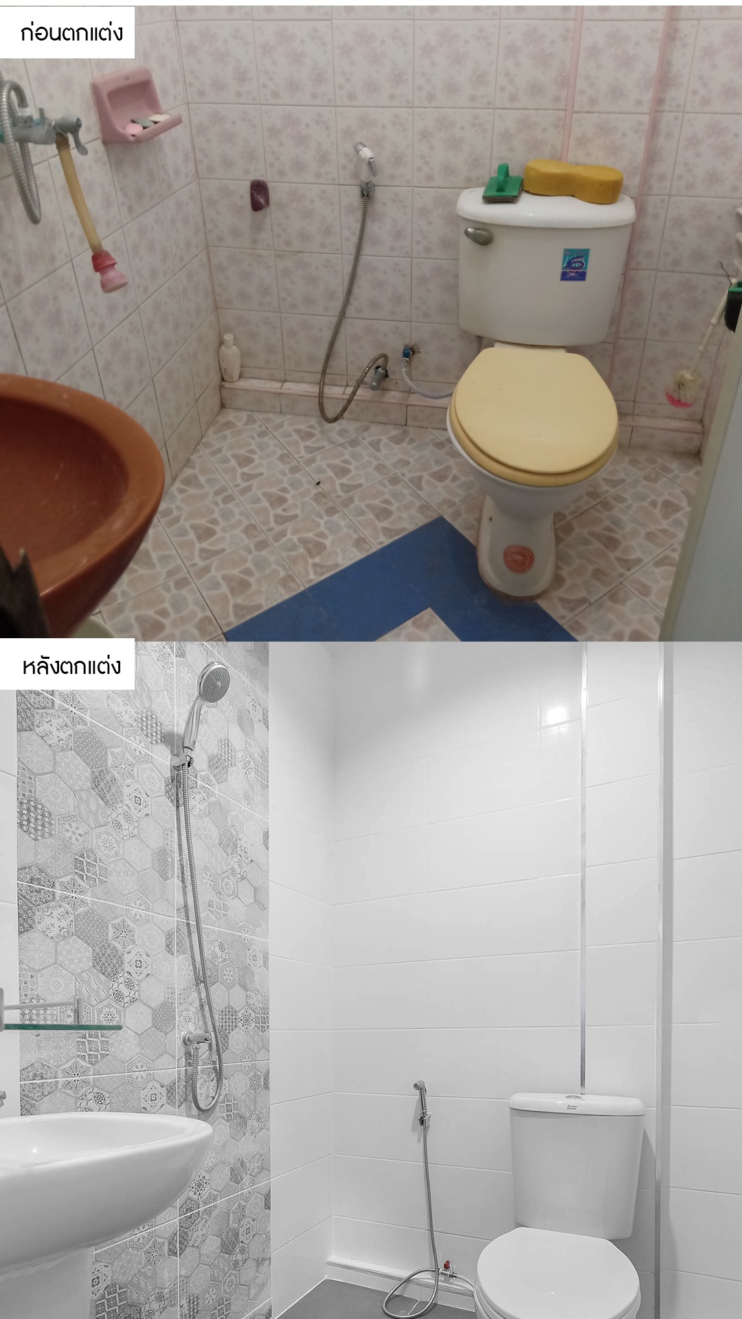ห้องน้ำเราได้ทำการเปลี่ยนกระเบื้องพื้น-ผนังให้ใหม่ทั้งหมด โดยกำหนดธีมให้เป็นดีไซน์โมเดิร์น ทั้งกระเบื้อง และสุขภัณฑ์ ครบครันทุกฟังก์ชั่นการใช้งาน แบบพร้อมอยู่อาศัยกันเลยครับ