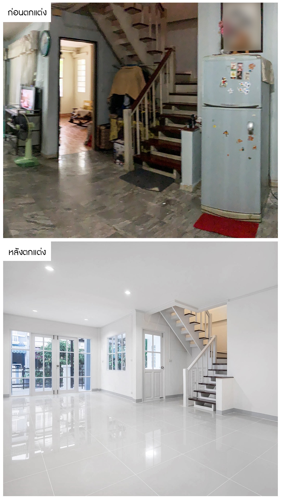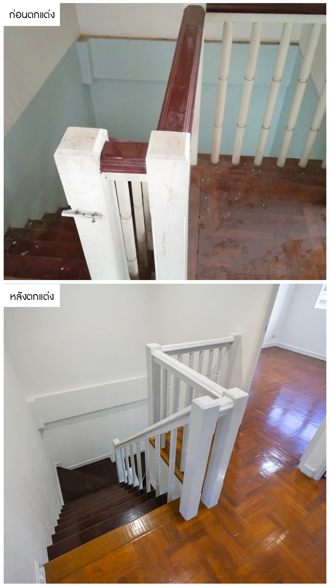 ราวบันได ได้มีการทาสีใหม่ในโทนสีสว่างเพื่อให้ดูโมเดิร์นขึ้น