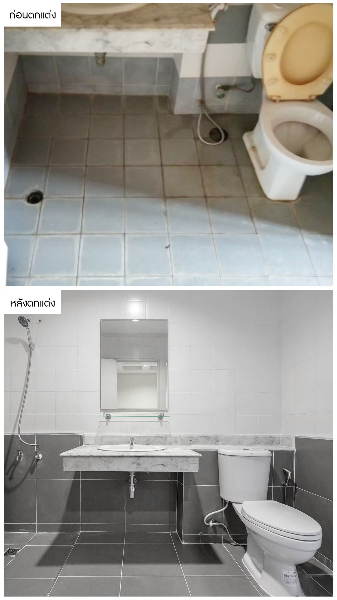 เปลี่ยนห้องน้ำเก่าด้วยดีไซน์ใหม่ ตกแต่งเน้นเป็นสไตล์โมเดิร์น ทั้งกระเบื้อง และสุขภัณฑ์ ครบครันทุกฟังก์ชั่นการใช้งาน แบบพร้อมอยู่อาศัยกันเลยครับ