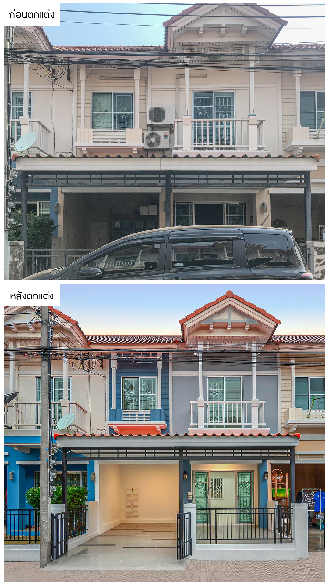 ภายนอกบ้านที่ดูเก่า ไม่น่ามอง มีสีซีดจางไปตามกาลเวลา เราได้ทำการรีโนเวทโดยทาสีใหม่ทั้งหลัง โดยเลือกโทนสีที่มีความโดดเด่น และให้ความรู้สึกสดใส พร้อมรั้วที่ดูทันสมัยรับกับตัวบ้าน