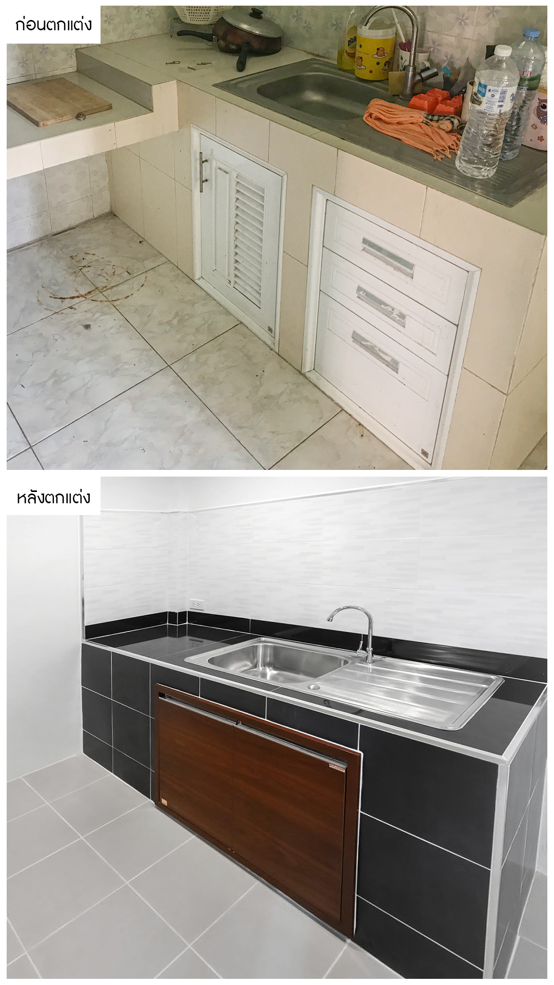 ห้องครัวตกแต่ง ต่อเติมเต็ม โดยเราได้ทำการปรับปรุง พร้อมเปลี่ยนให้เป็นครัวใหม่ดีไซน์โมเดิร์น ตกแต่งให้ครบทุกฟังก์ชั่น ทั้งเคาน์เตอร์ครัว ,แผงกันกระเด็น และซิ้งล้างจาน ฯลฯ