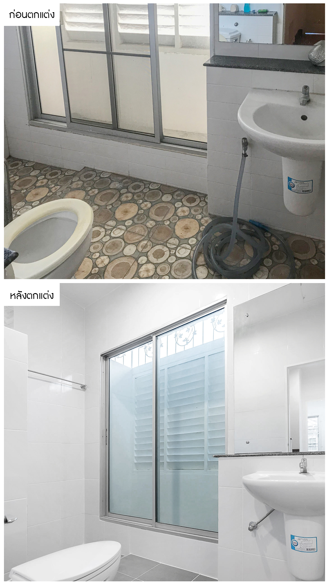 จากเดิมที่ห้องน้ำมีสภาพเก่า ไม่น่าใช้งาน เราได้ทำการตกแต่งใหม่ให้เป็นดีไซน์โมเดิร์น คัดวัสดุคุณภาพดี ทั้งพื้นกระเบื้องกันลื่น ,กระเบื้องผนัง และสุขภัณฑ์ในห้องน้ำ ตอบโจทย์คนรุ่นใหม่ ครบครันทุกการใช้งานเลยครับ