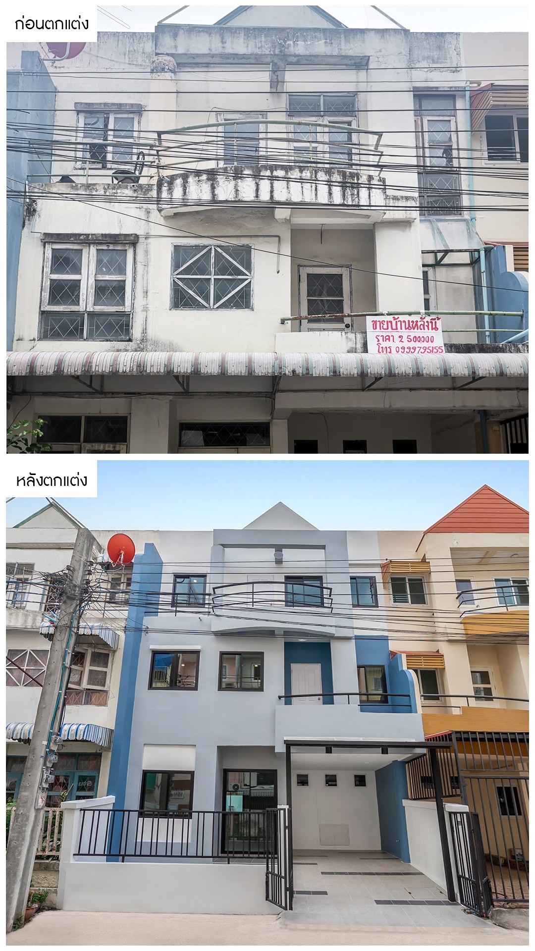 ภายนอกที่สภาพดูเก่า เพื่อให้มีความโดดเด่นยิ่งขึ้น เราได้ทำการเปลี่ยนสีหน้าบ้านใหม่ให้มีความโมเดิร์น และทันสมัยยิ่งขึ้น