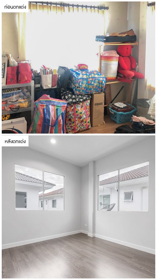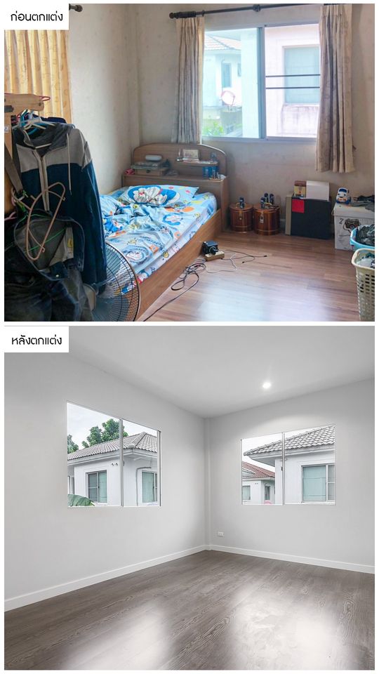 ดูโปร่งกว้างมากขึ้น ด้วยหน้าต่าง/ประตูระเบียงกระจกบานเลื่อน พร้อมปูพื้นลามิเนตสีใหม่ ที่ทันสมัยและทนทาน