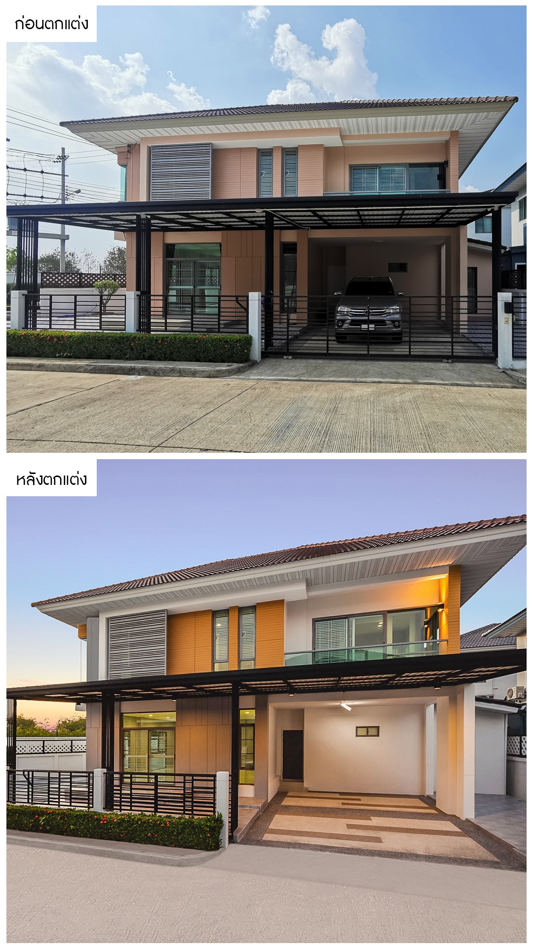 การเปลี่ยนบ้านหลังเก่าที่ยังโครงสร้างแข็งแรง แต่สีซีดจางไปตามกาลเวลาให้เป็นบ้านสวย หลังใหม่เหมือนได้บ้านมือ1 และดีไซน์โมเดิร์นตกแต่งจัดเต็ม ทั้งภายในและภายนอก จากแนวคิดที่เน้นตอบโจทย์ผู้อยู่อาศัยเป็นหลัก เราจึงใส่ใจทุกรายะเอียดเพื่อทำให้บ้านหลังนี้ กลับมามีชีวิตชีวาและน่าอยู่อาศัยอีกด้วยครับ