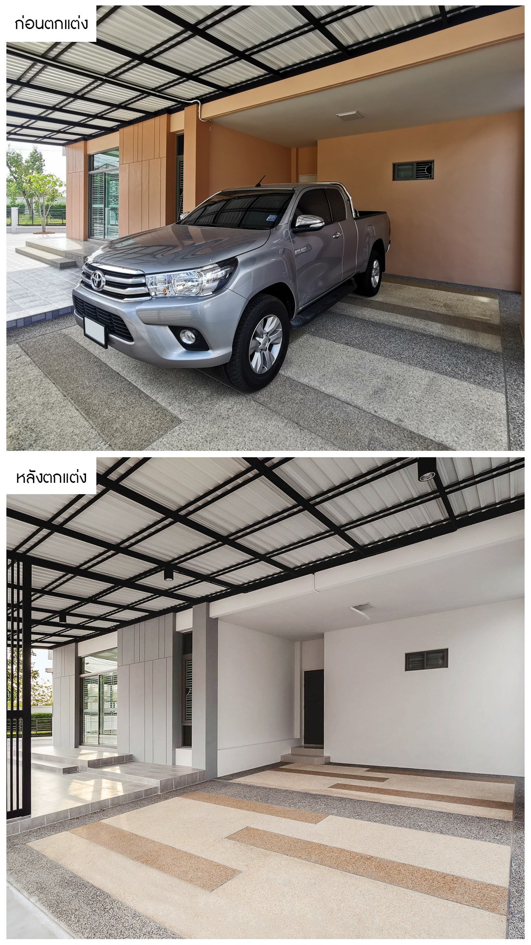 เราได้ปรับปรุงที่จอดรถให้ดูใหม่ ทั้งปรับปรุงพื้นทรายล้างให้ใหม่ใช้งานได้ดียิ่งขึ้น และเน้นความโปร่งกว้าง เพื่อให้มีแสงธรรมชาติ และลมเข้าถึงอีกด้วยครับ