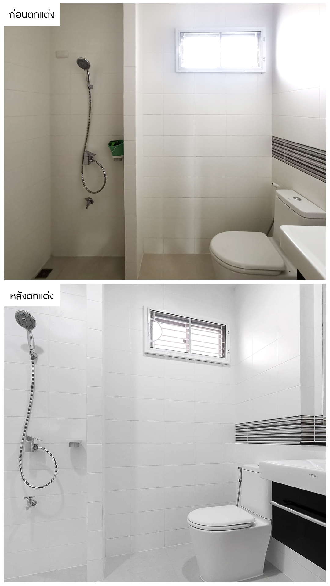 ตกแต่งสวยด้วยวัสดุคุณภาพดี จัดเป็นสัดส่วนแบ่งโซนแห้ง-เปียก ครบครันทั้งอ่างล้างหน้า ฝักบัว กระเบื้องกันลื่น ในส่วนของผนัง เราก็ปูกระเบื้องตั้งแต่พื้นจรดเพดาน เพื่อให้ง่ายต่อการทำความสะอาด พร้อมเข้าอยู่เลยครับ