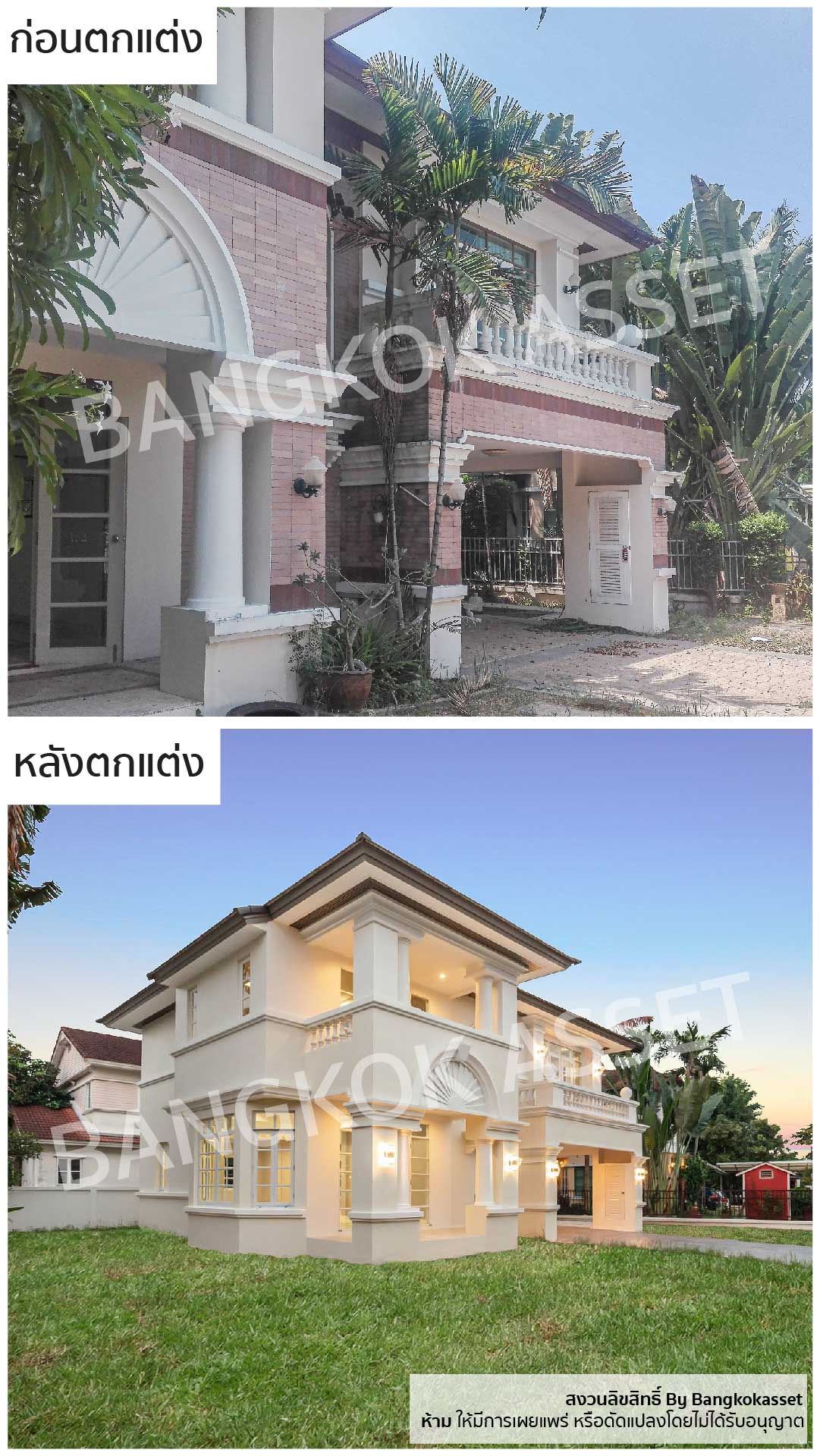 จากบ้านหลังเดิมที่ดูแล้วเฉยๆ ได้แปลงสภาพตกแต่งใหม่ทั้งหลัง ด้วยการทาสีใหม่ให้ดูสว่างยิ่งขึ้น เพิ่มความโดดเด่นให้บ้านทั้งหลัง และตกแต่งด้วยวัสดุคุณภาพ และได้เปลี่ยนกระเบื้องกันลื่นบริเวณลานจอดรถให้ใหม่ทั้งหมดด้วย