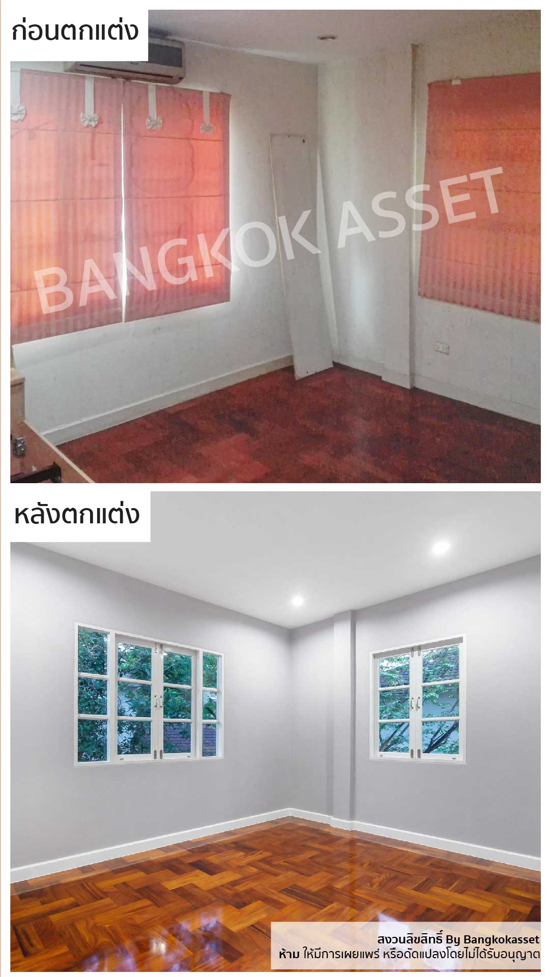 ห้องนอนทุกห้องเราปรับให้สวยงามมากขึ้น ด้วยการเปลี่ยนพื้นไม้ปาร์เก้ให้ความเป็นธรรมชาติ คงทน  เปลี่ยนประตู หน้าต่างใหม่ทั้งหมด ทำให้ดูสวยโมเดิร์นยิ่งขึ้น และเปลี่ยนโทนสีภายในห้องเป็นโทนขาวสว่าง ให้ความรู้สึกผ่อนคลาย