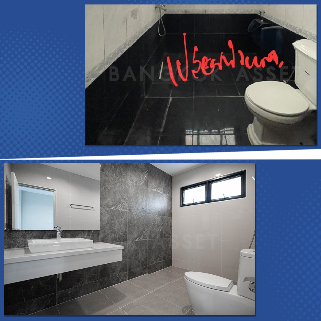 ห้องน้ำเราเปลี่ยนสุขภัณฑ์ใหม่ เปลี่ยนกระเบื้องผนังลายหินอ่อน และกระเบื้องพื้นแบบกันลื่นใหม่ นอกจากวัสดุที่เปลี่ยนให้ใหม่แล้ว เรายังดูแลระบบระบายน้ำ และระบบไฟฟ้าให้พร้อมใช้งานได้อย่างดีครับ