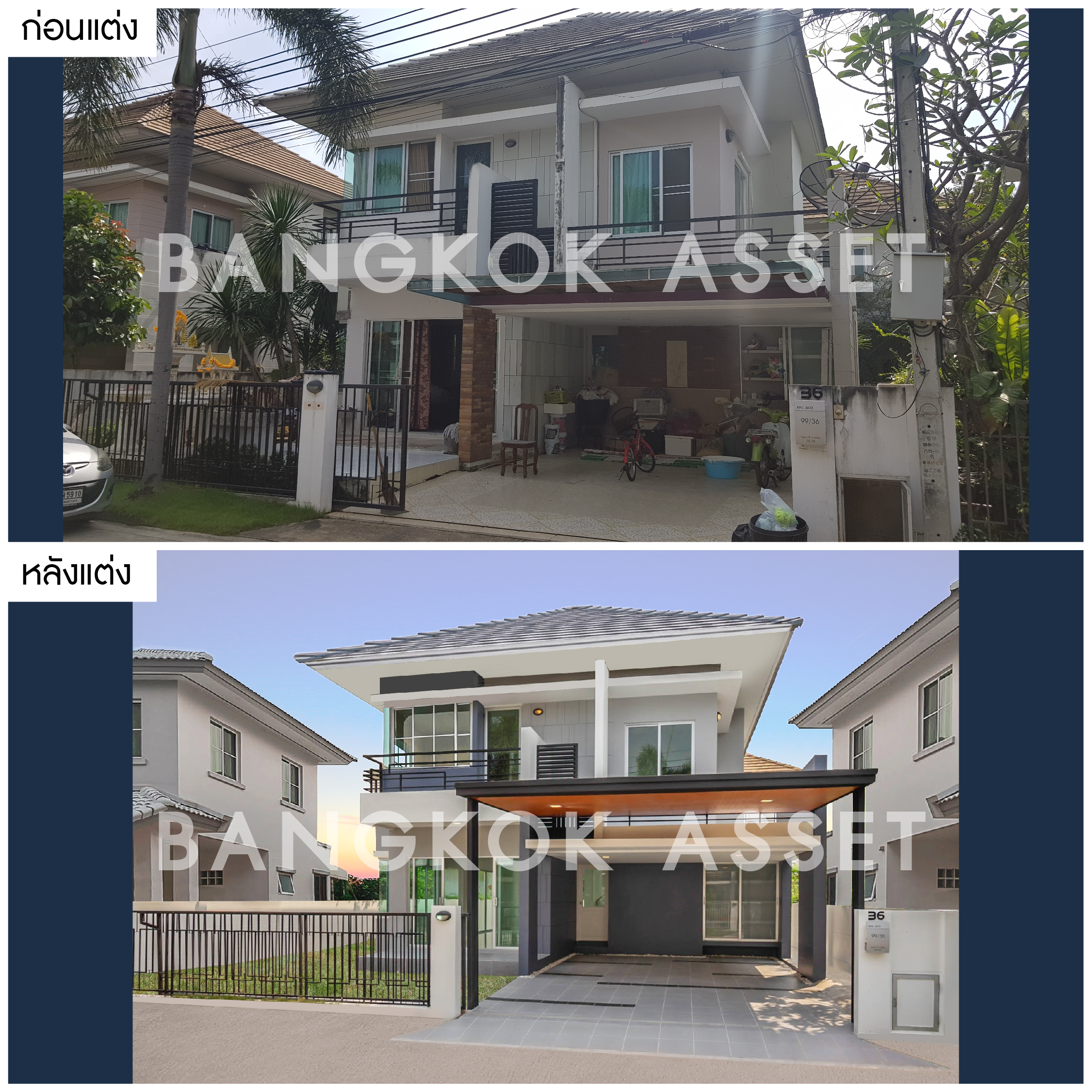 เราได้แปลงสภาพตกแต่ง พร้อมเปลี่ยนวัสดุใหม่ด้วยวัสดุคุณภาพอย่างดีทั้งหลัง รวมทั้งทาสีใหม่ ปรับเปลี่ยนพื้นที่ลานจอดรถ ด้วยการปูกระเบื้องกันลื่นที่เป็นลวดลายเฉพาะของบ้านบางกอก และเปลี่ยนหลังคาเป็นแบบเมทัลชีท ที่มีฉนวนกันความร้อนช่วยลดความร้อน และเสียงได้