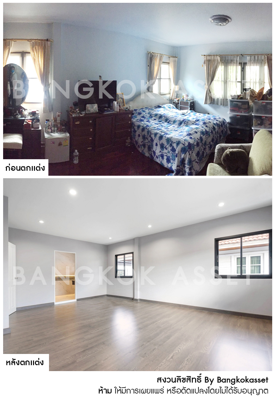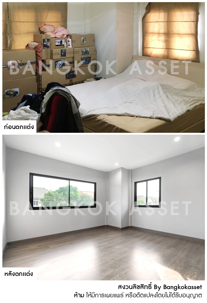 ห้องนอนทุกห้องเราเปลี่ยนเป็นพื้นลามิเนตให้ใหม่ทั้งหมด ให้ความสวยงาม คงทน และนิยมใช้ในบ้านยุคใหม่ โดยคุมโทนสีภายในห้องเป็นโทนขาวสว่าง เพิ่มความรู้สึกผ่อนคลายให้กับผู้อยู่อาศัยอีกด้วย