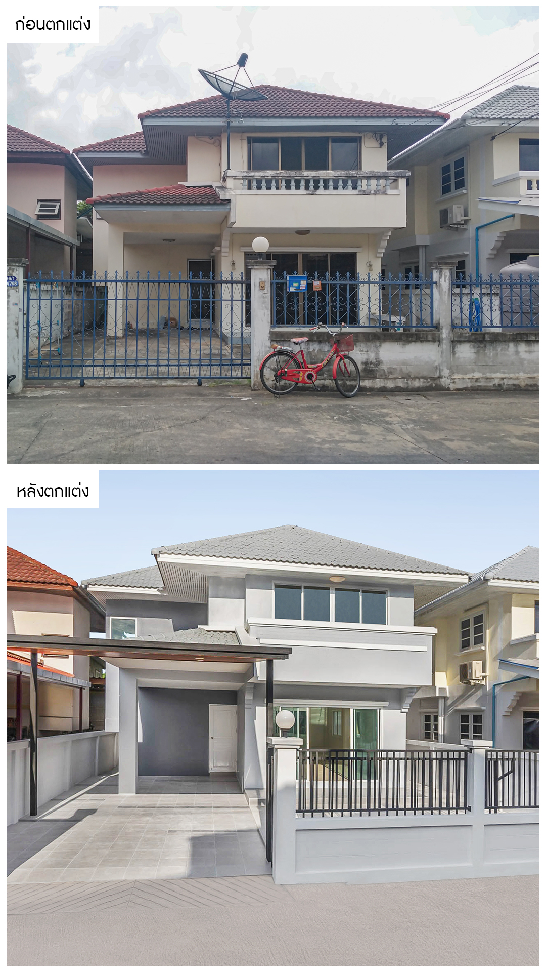 เราได้ปรับปรุง ตกแต่งใหม่ทั้งหลัง โดยได้ทำการเคลียร์พื้นที่บริเวณบ้าน ปรับรั้วแบบใหม่ให้ดูทันสมัย และทาสีใหม่ทั้งหลังกำหนดโทนสีขาวเทา เพิ่มความโมเดิร์นให้กับบ้านมากยิ่งขึ้นครับ