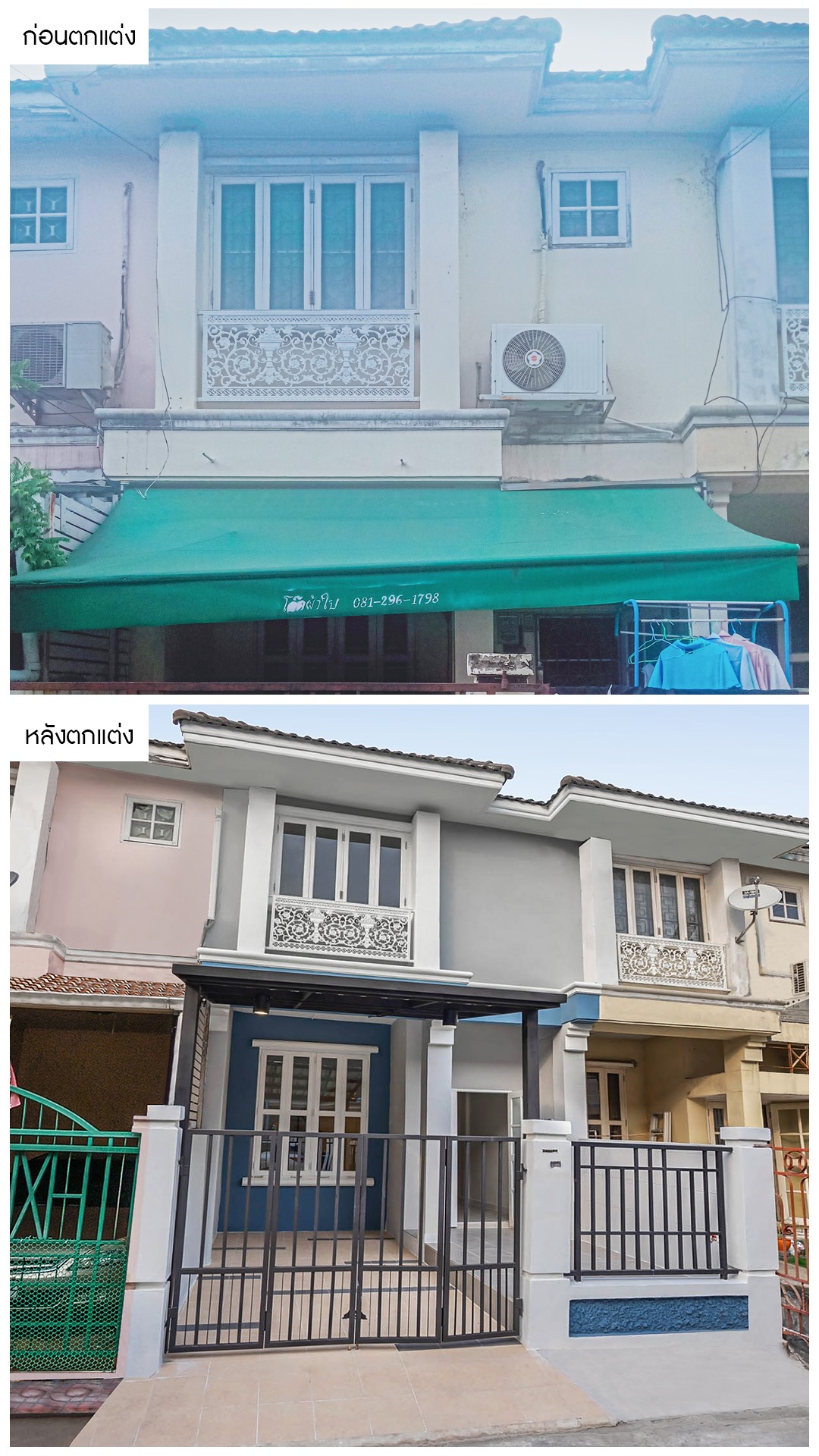 ในส่วนของหน้าบ้านที่มีสภาพเก่า สีซีดจางไปตามการเวลา เราได้ทำการทาสีใหม่ ให้สดใส พร้อมเคลียร์บริเวณด้านหน้าให้ดูโล่ง และโปร่งยิ่งขึ้น