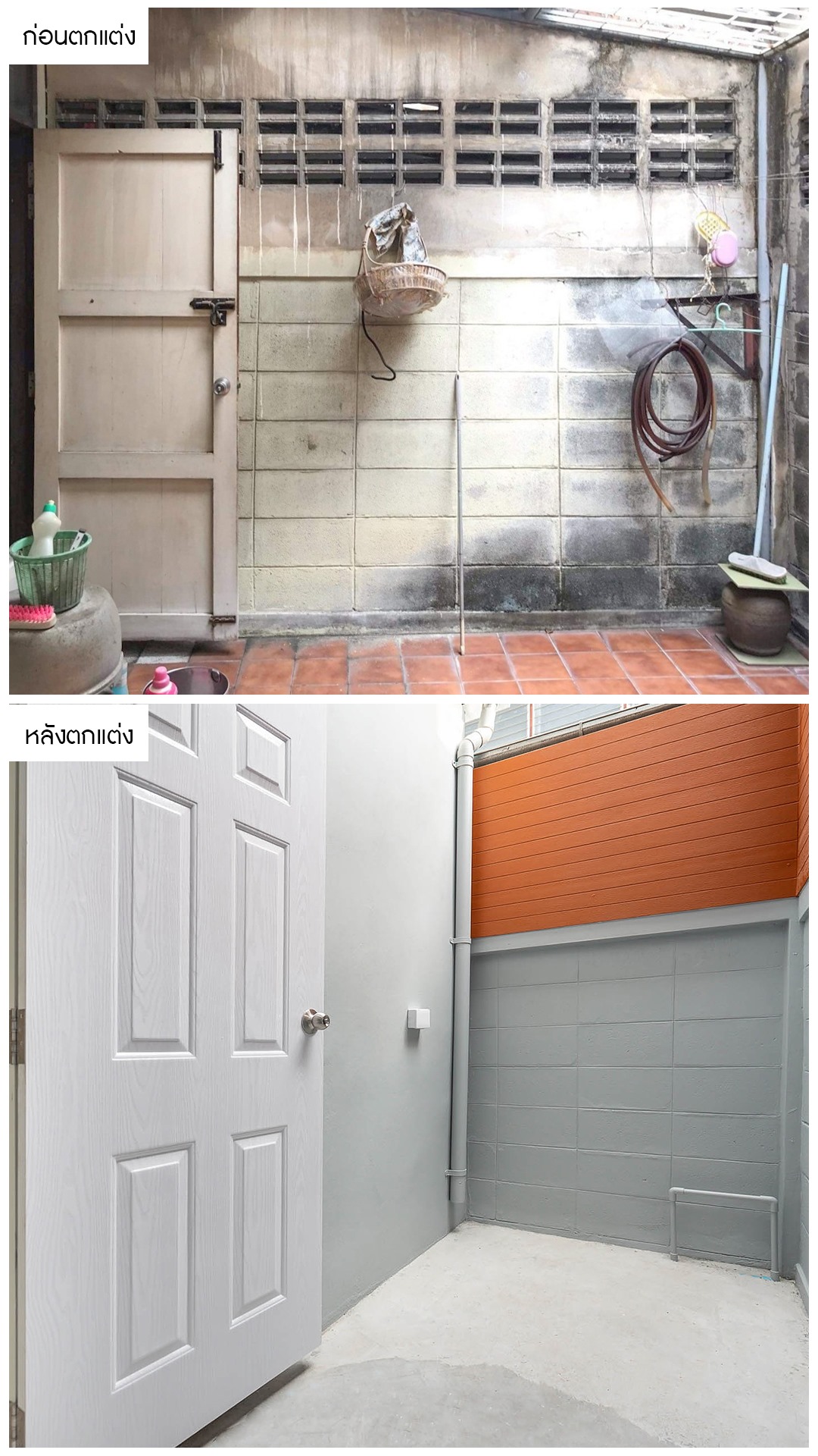 ลานซักล้างปรับปรุงใหม่ทั้งหมดตั้งแต่ประตู ผนังและพื้นปูนเพื่อให้สะดวกต่อการใช้งานและยังง่ายต่อการทำความสะอาดอีกด้วย