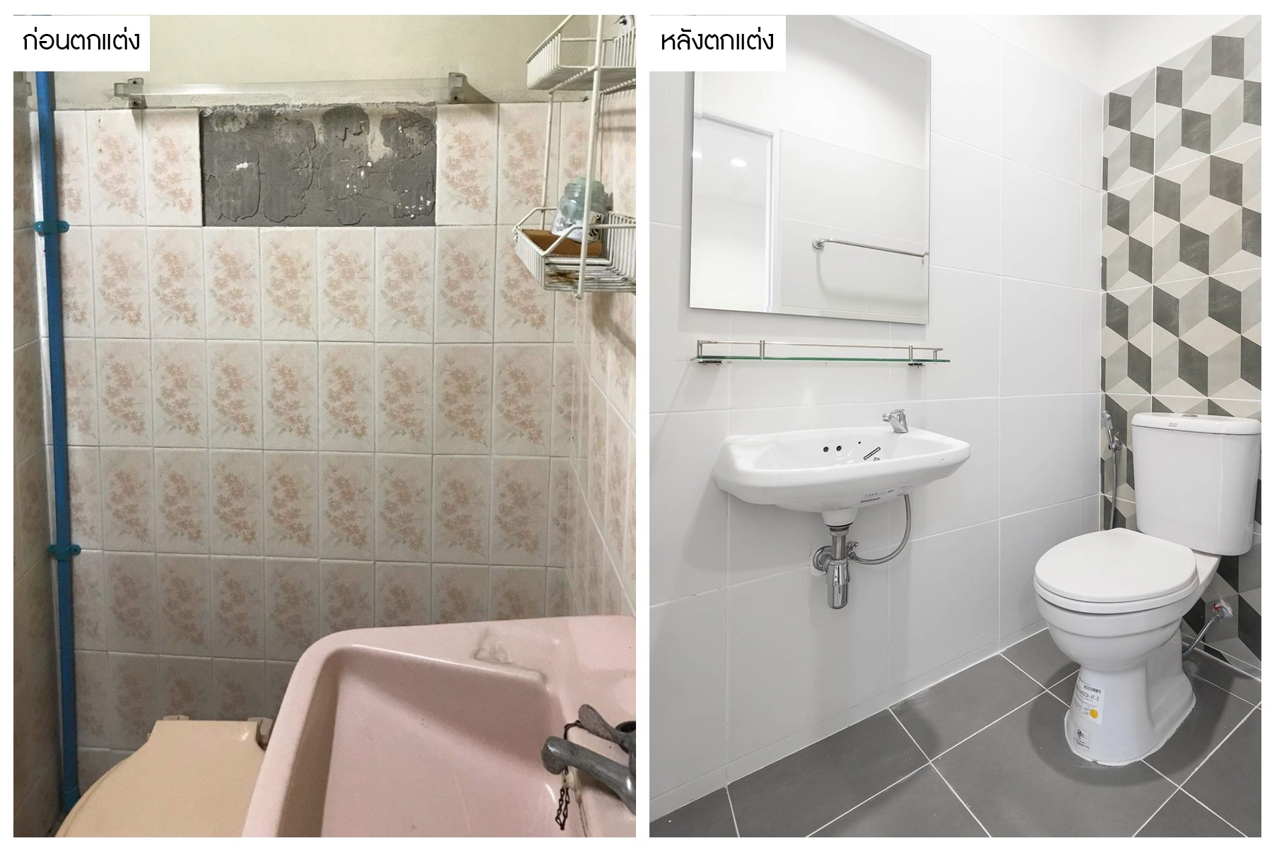 จากเดิมที่ห้องน้ำมีสภาพเก่า ไม่เหมาะแก่การใช้งาน เราได้ทำการตกแต่งใหม่ดีไซน์โมเดิร์น โทนสีขาวสะอาดตา น่าใช้งาน คัดสรรวัสดุคุณภาพดี ทั้งสุขภัณฑ์ในห้องน้ำ พื้นกระเบื้องกันลื่น ,กระเบื้องผนัง เรียกว่าครบครันทุกฟังก์ชั่นการใช้งานจริงๆครับ