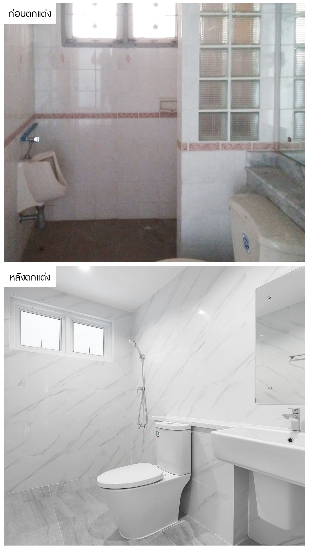 ในส่วนของห้องน้ำเราได้เปลี่ยนห้องน้ำแบบเดิมๆ ให้เป็นห้องน้ำสุดหรู ที่ใส่ใจทุกรายละเอียด แม้กระทั่งการเลือกแผ่นกระเบื้อง และสุขภัณฑ์ที่สมราคา ดีไซน์ให้มีความสวยงามลงตัว แล้วยังสามารถตอบโจทย์ทุกการใช้งานอีกด้วยครับ