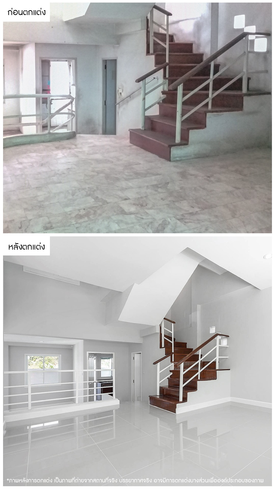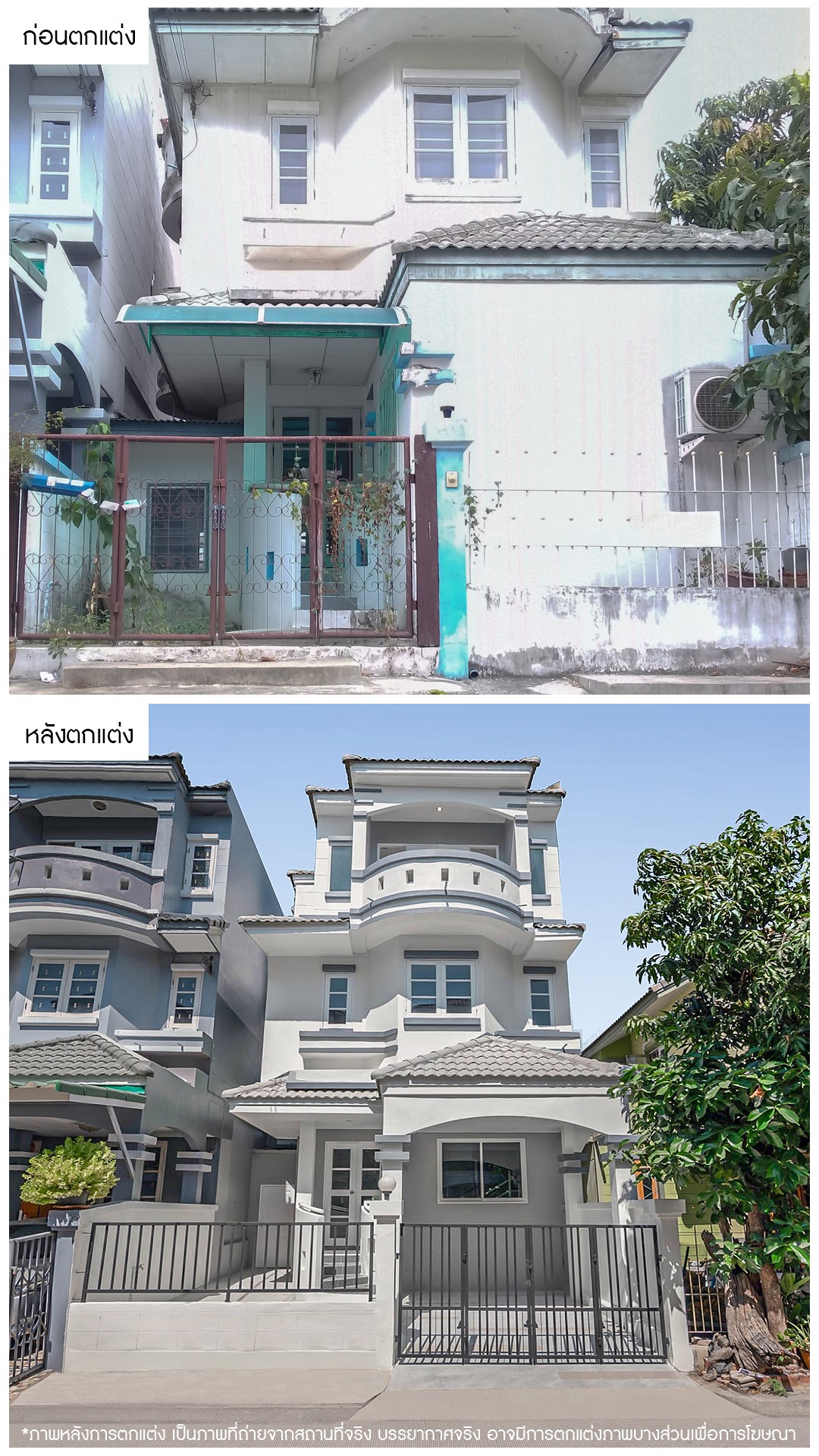 ทาวน์โฮม 3 ชั้น 4 ห้องนอน 3 ห้องน้ำ เป็นอีกหนึ่งหลังที่ค่อนข้างหินสำหรับทีมงาน เพราะหลังนี้ เจ้าของเดิมได้ทำการเพิ่มห้อง ปิดทางเข้าหน้าบ้าน และเราต้องทำการปรับปรุง ให้กลับมาเป็นแบบทรงเดิมของโครงการ เป็นโจทย์ที่ท้าทายความสามารถ ของทีมงานบ้านบางกอกฯ เหมือนกันครับ เรามาดูกันว่า..กว่าจะมาเป็นบ้านหลังสวยๆ ที่ลูกค้าได้เห็น เราได้รีโนเวทในส่วนใดกันบ้าง... (บอกเลย ซื้อบ้านตกแต่งใหม่จากบางกอกฯ คุ้มค่าที่สุดแล้ว)