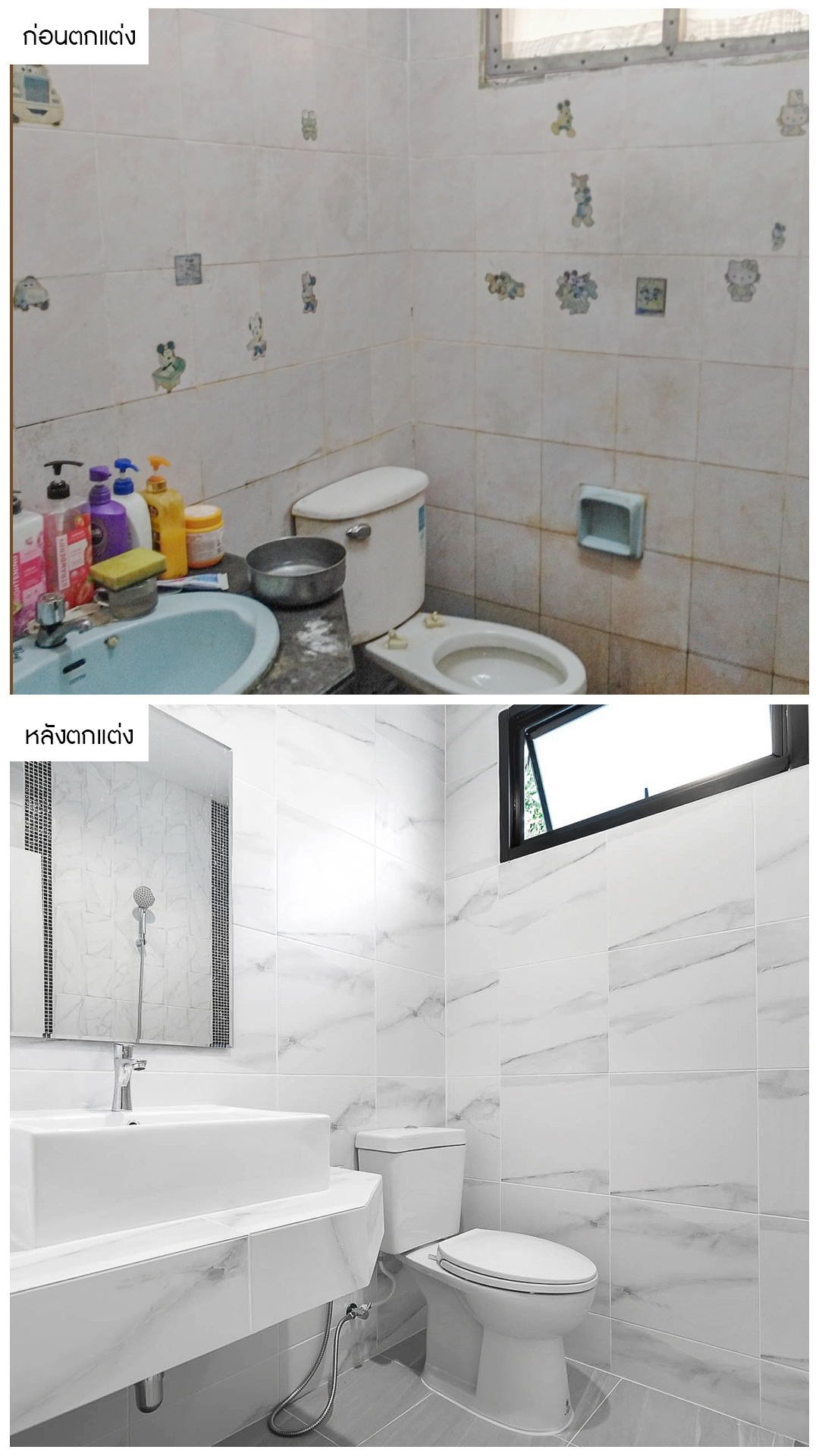 ตกแต่งสไตล์โมเดิร์น คัดสรรวัสดุคุณภาพพรีเมี่ยม ทั้งอ่างล้างหน้า กระจก ฝักบัว และเปลี่ยนสุขภัณฑ์ให้ใหม่ทั้งหมด พร้อมปูพื้นกระเบื้องแบบกันลื่น เพื่อความปลอดภัยให้แก่ผู้ใช้งานอีกด้วยครับ