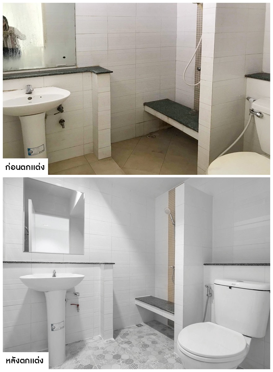 ได้รับการปรับปรุงให้พร้อมอยู่อาศัย เปลี่ยนสุขภัณฑ์ให้ใหม่ทั้งหมด ปูกระเบื้องใหม่ให้ดูทันสมัยมากขึ้น