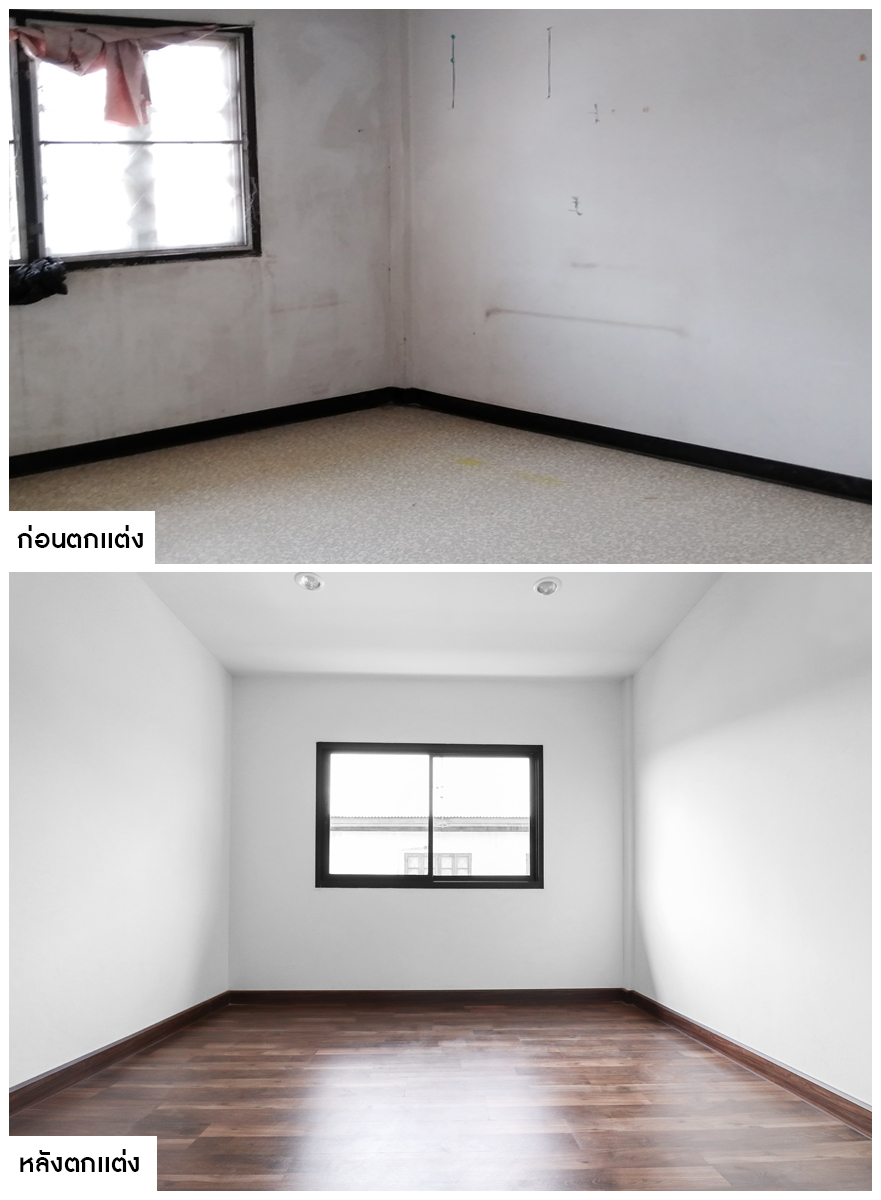 จากห้องนอนที่เคยมืดทึบ ก็ดูกว้าง และสว่างขึ้นด้วยสีโทนอ่อน ที่ให้ความรู้สึกอบอุ่น ชวนผ่อนคลาย พร้อมตำแหน่งปลั๊กไฟที่เราเตรียมไว้ให้พร้อมอยู่อาศัยกันเลยครับ