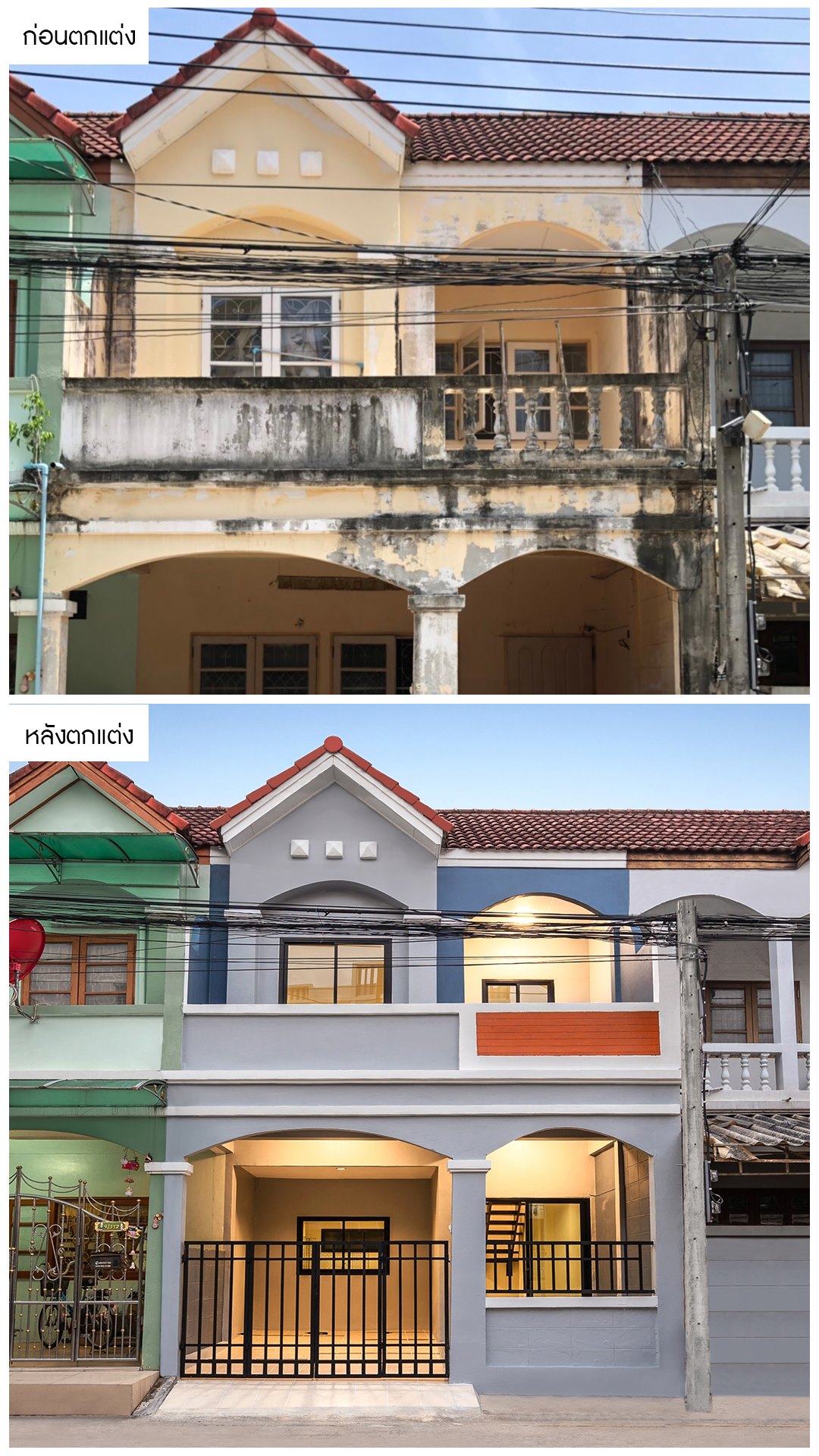 ดูจากภายนอกเปลี่ยนไปจนจำแทบไม่ได้เลยครับ โดยเราได้ทำการเปลี่ยนสีภายนอกเป็นสีโทนใหม่เพื่อเพิ่มความโดดเด่นให้กับตัวบ้าน และตอบโจทย์ผู้อยู่อาศัย ที่ใครเห็นก็ต้องเหลียวมอง