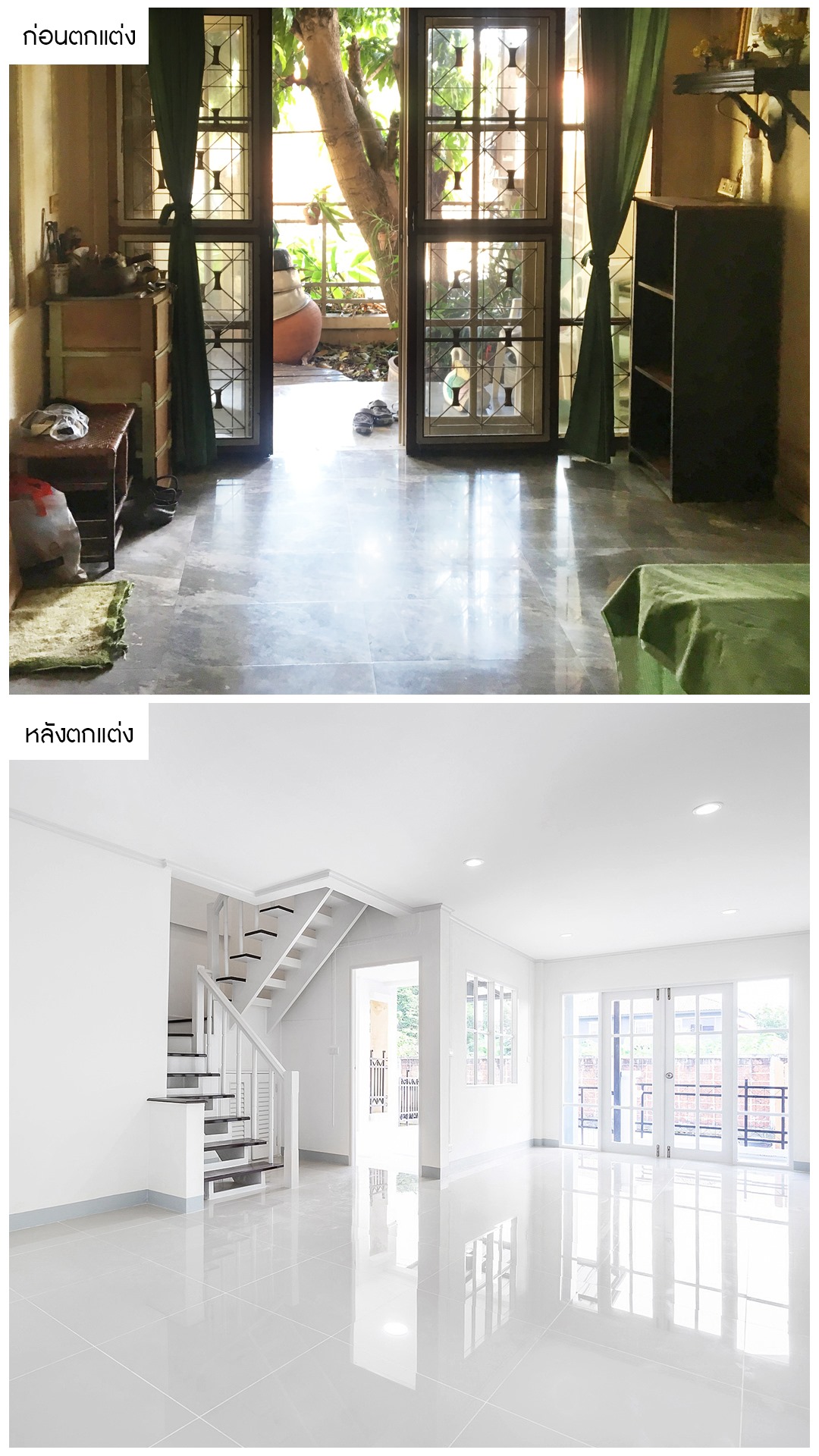 จากสภาพบ้านที่ทรุดโทรมและดูเก่า เราได้เปลี่ยนสีบ้านเก่าๆ ให้เป็นบ้านสีโทนสว่าง เพื่อให้ดูน่าอยู่ และแฝงความโมเดิร์น ตอบโจทย์คนรุ่นใหม่