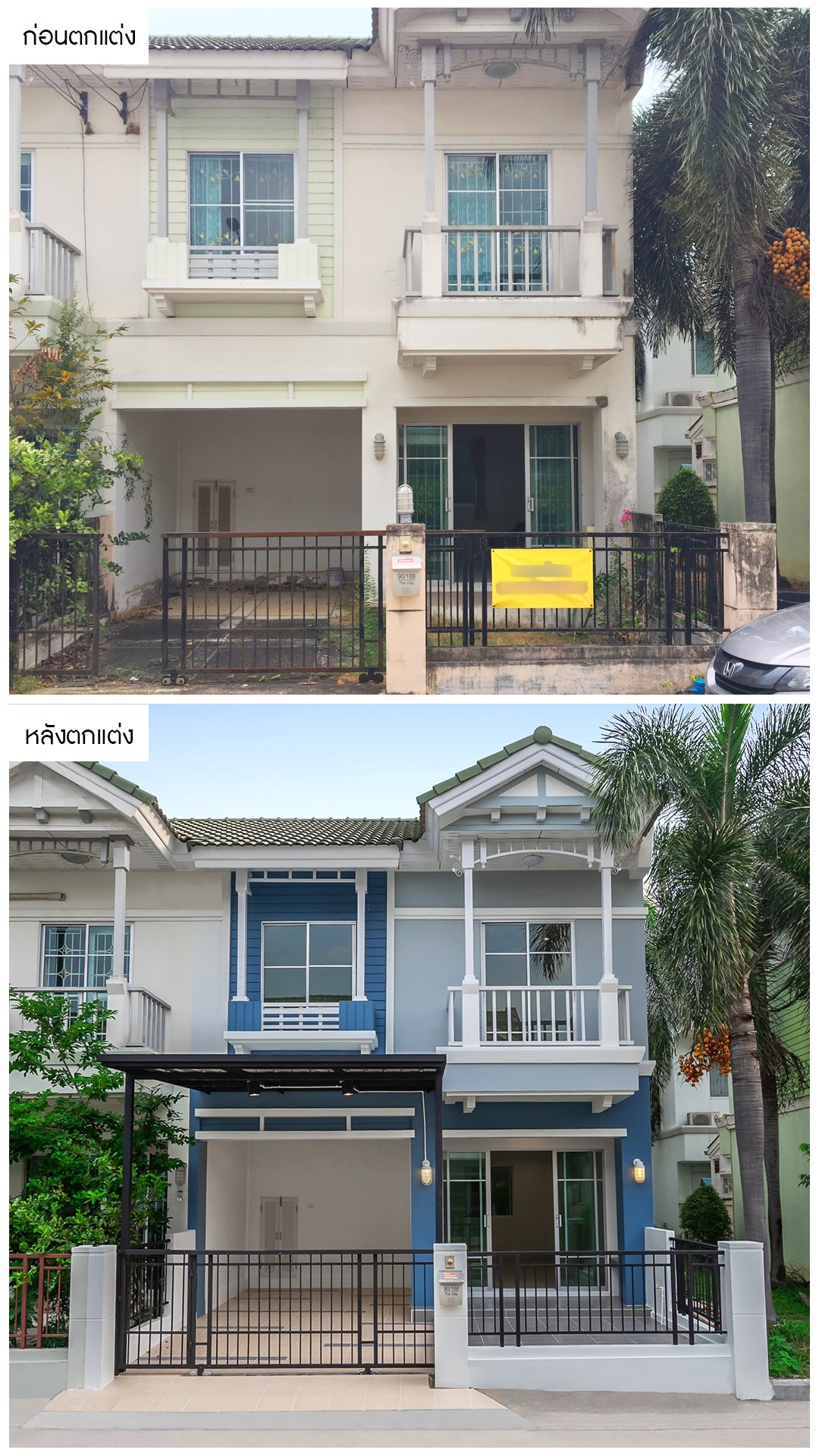 ภายนอกบ้านที่ดูเก่า ไม่น่ามอง เราได้ทำการรีโนเวทโดยทาสีใหม่ทั้งหลัง โดยเลือกโทนสีที่มีความโดดเด่น และให้ความรู้สึกโมเดิร์น สดใส สะดุดทุกสายตา