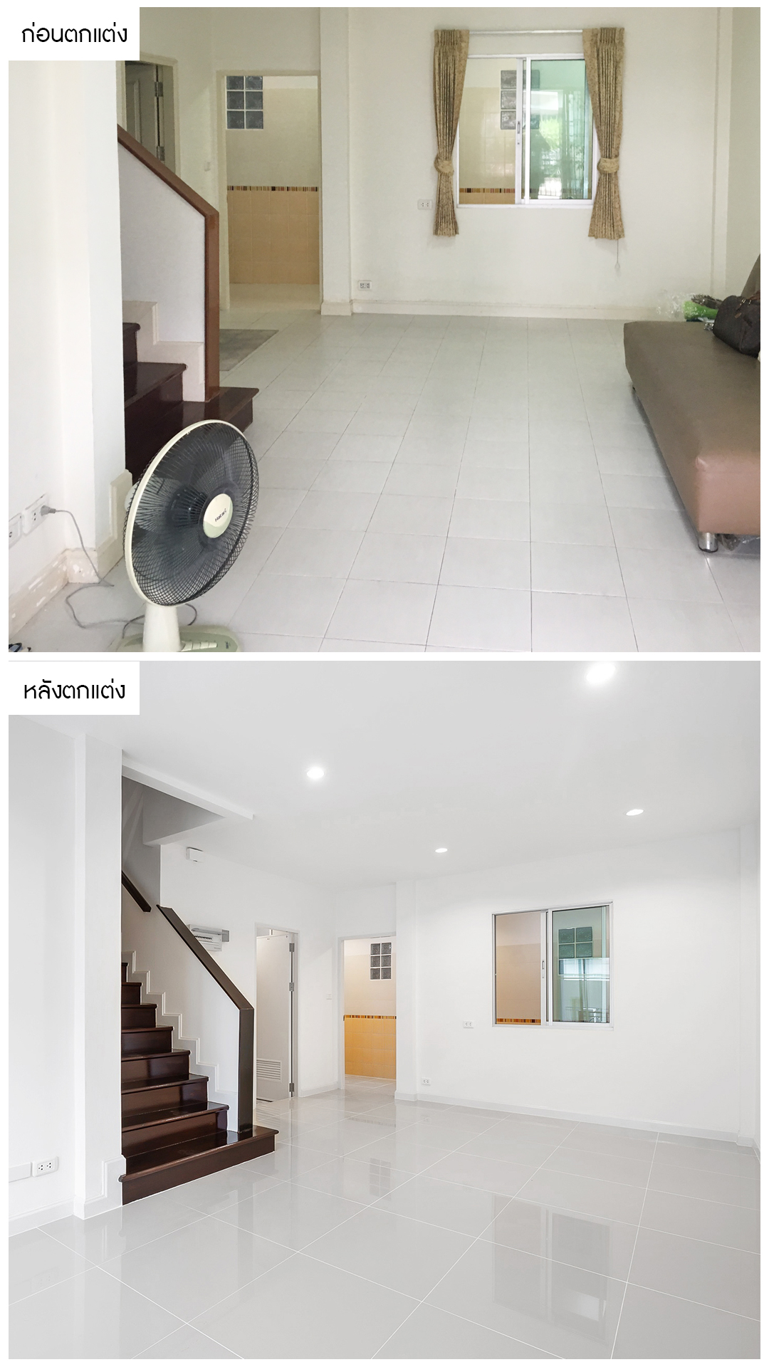 ภายในได้เปลี่ยนโทนสีใหม่ทั้งหมด โดยเน้นสีโทนสว่าง ที่ให้ความรู้สึกโปร่ง กว้าง และอบอุ่นน่าอยู่มากขึ้น พร้อมเปลี่ยนพื้นแบบเดิมให้เป็นพื้นแกรนิตโต้ ซึ่งเป็นพื้นกระเบื้องที่นิยมปูภายในบ้านยุคใหม่ครับ