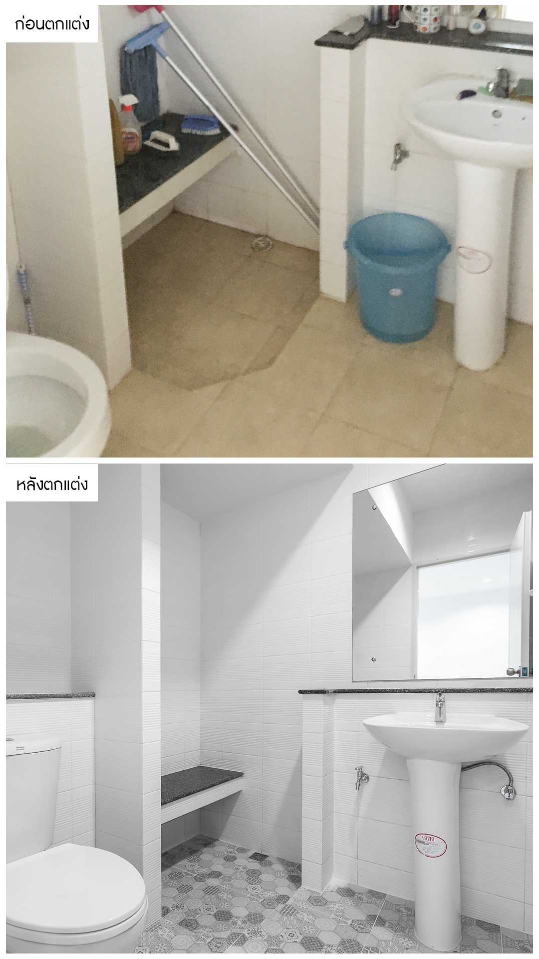 จากเดิมที่ห้องน้ำมีสภาพเก่า ไม่เหมาะแก่การใช้งาน เราได้ทำการตกแต่งใหม่ให้เป็นดีไซน์โมเดิร์น ด้วยวัสดุคุณภาพดี ทั้งพื้นกระเบื้องกันลื่น ,กระเบื้องผนัง และสุขภัณฑ์ในห้องน้ำ ครบครันทุกการใช้งานจริงๆครับ