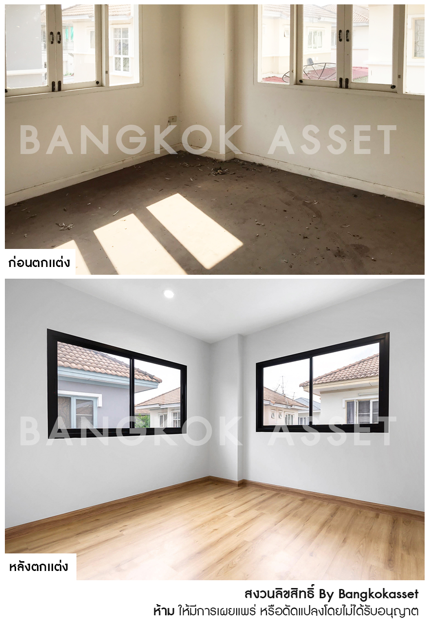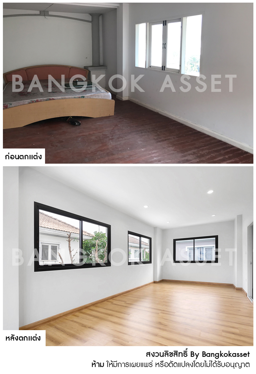 ห้องนอนทุกห้องเราเปลี่ยนเป็นพื้นลามิเนตให้ใหม่ทั้งหมด ให้ความสวยงามคงทนและนิยมใช้ในบ้านยุคใหม่ โดยคุมโทนสีภายในห้องเป็นโทนขาวสว่าง เพิ่มความรู้สึกผ่อนคลายให้กับผู้อยู่อาศัยอีกด้วย