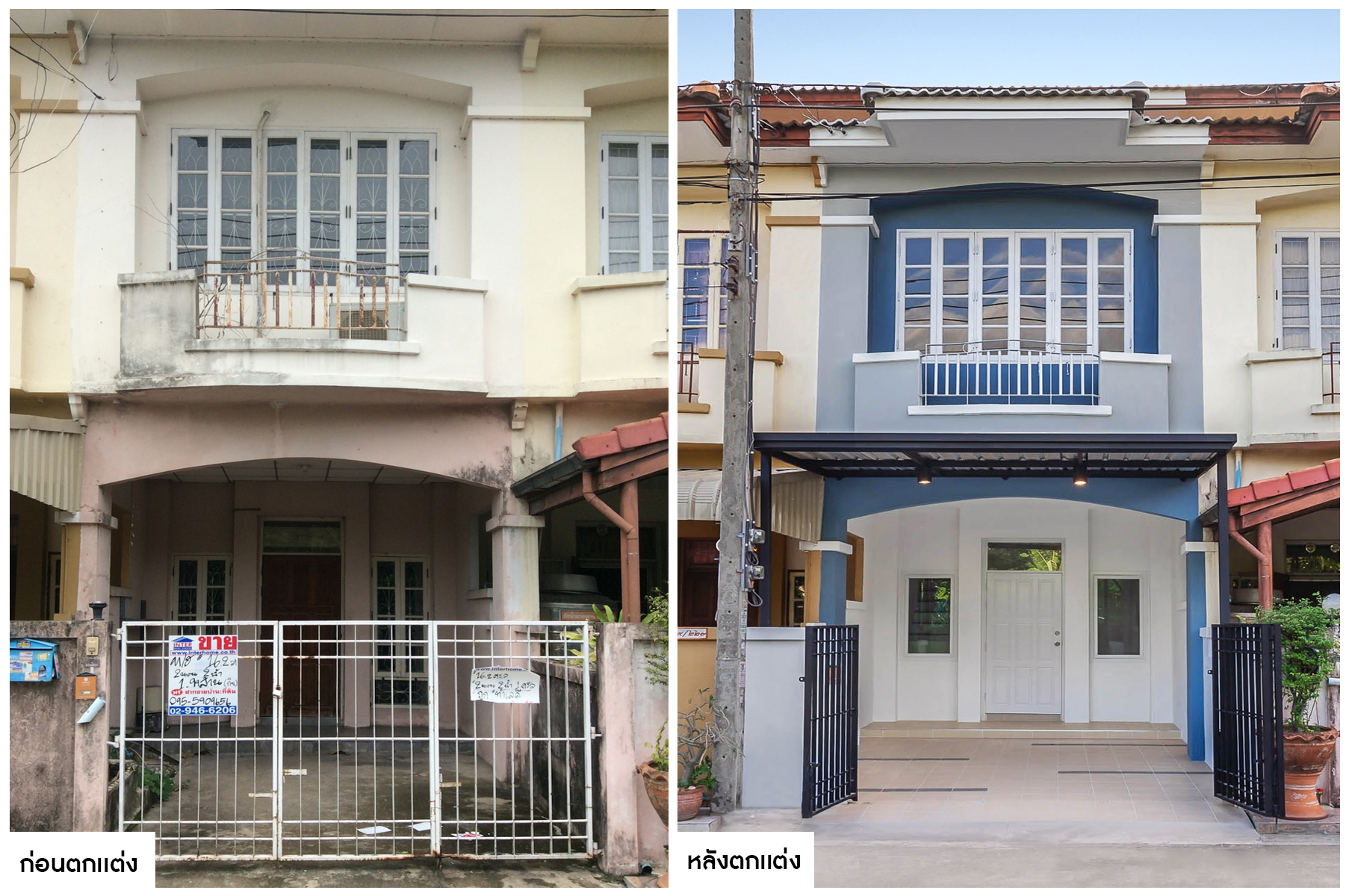จากหน้าบ้านที่มีสภาพไม่สวยงาม สีซีดจางไปตามกาลเวลา เราได้ทาสีโทนใหม่เพื่อเพิ่มความสดใสให้กับหน้าบ้าน