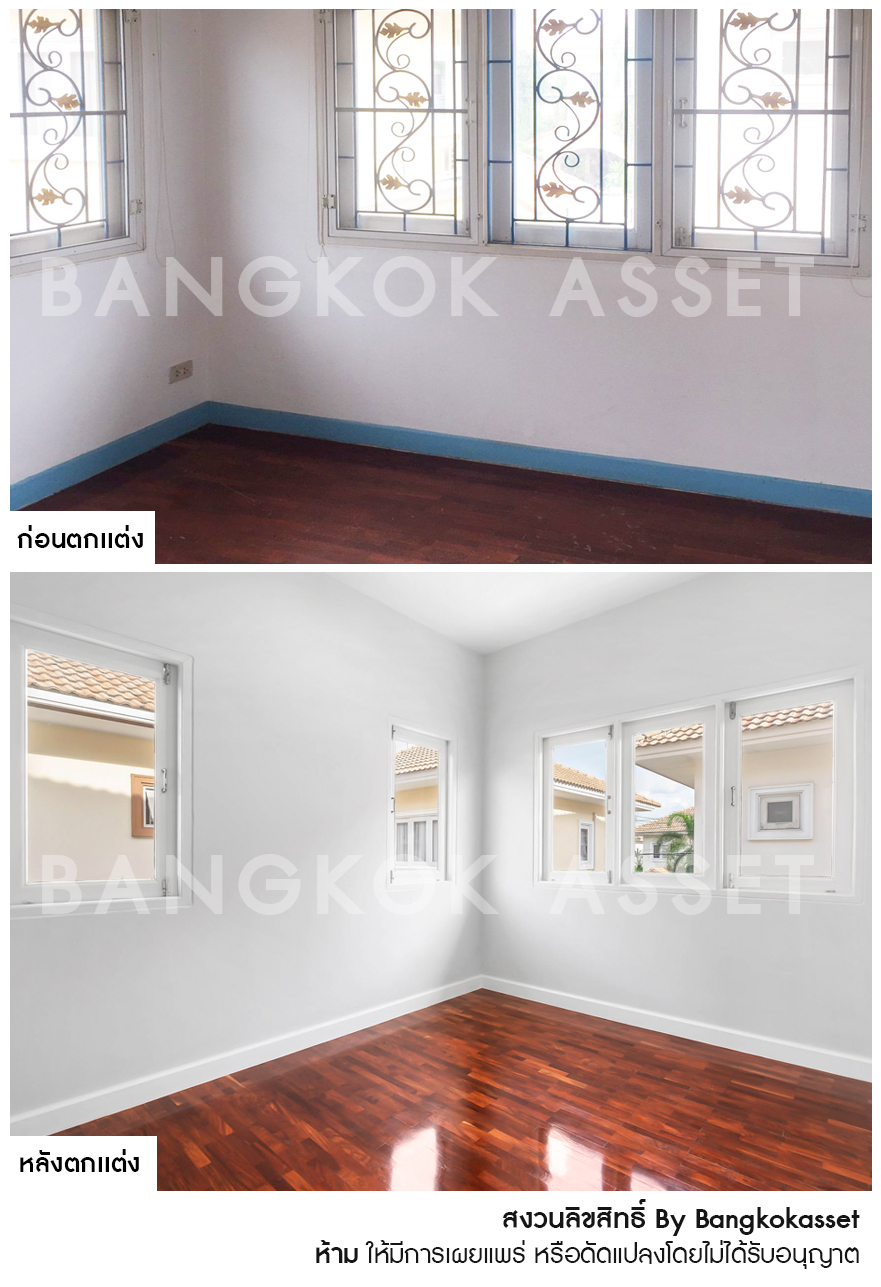 ห้องนอนทุกห้องเราเปลี่ยนเป็นพื้นไม้ปาร์เก้ให้ความเป็นธรรมชาติ ดูอบอุ่น สบาย มีความหนา และแข็งแรงมากยิ่งขึ้น โดยคุมโทนสีภายในห้องเป็นโทนขาวสว่าง เพิ่มความรู้สึกผ่อนคลายให้กับผู้อยู่อาศัยอีกด้วย