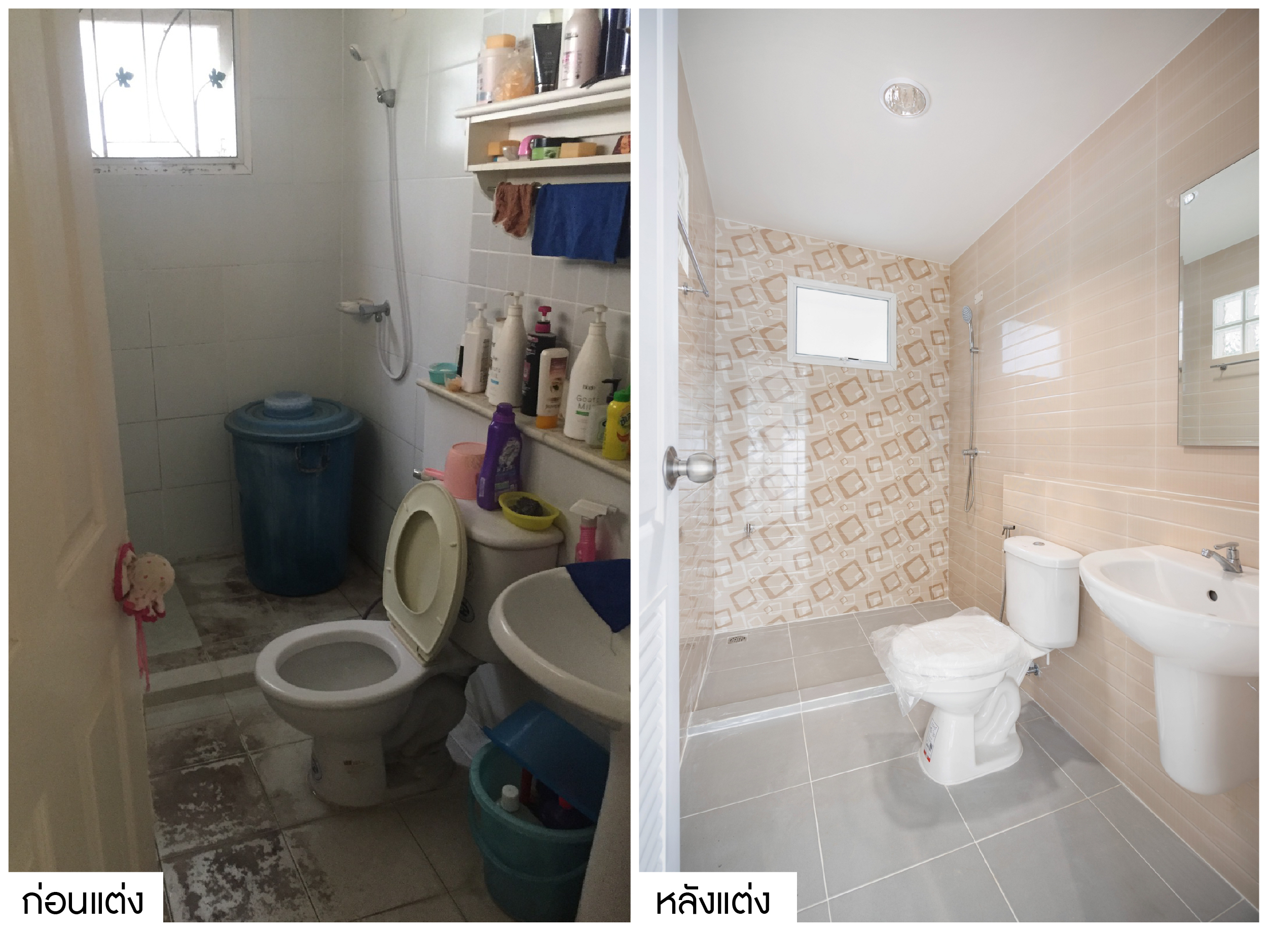 ตกแต่งสวยด้วยวัสดุคุณภาพดี โดยเราได้ทำการเปลี่ยนสุขภัณฑ์ให้ใหม่ทั้งหมด และปูพื้นกระเบื้องกันลื่นจรดเพดาน เพื่อความปลอดภัยและง่ายต่อการทำความสะอาด พร้อมฟังก์ชั่นครบครัน ทั้งอ่างล้างหน้า กระจก ฝักบัวและสุขภัณฑ์คุณภาพ แบบพร้อมอยู่อาศัยกันเลยครับ และยังมีช่องหน้าต่างที่นอกจากจะช่วยให้แสงธรรมชาติเข้าถึง ยังช่วยให้อากาศภายในถ่ายเท ทำให้ห้องน้ำมีความโปร่ง โล่งยิ่งขึ้น
