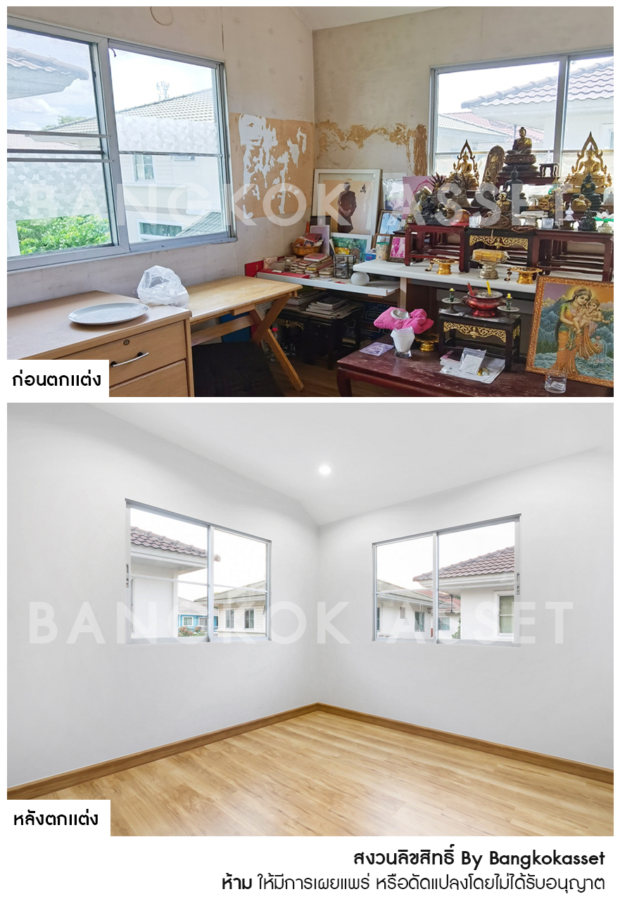 จากบ้านหลังเดิมที่ดีไซน์ยังเป็นแบบเก่า เราได้แปลงสภาพตกแต่งใหม่ทั้งหลัง ด้วยการทาสีใหม่ให้ดูขาวสว่างยิ่งขึ้น เพิ่มความโดดเด่นให้บ้านทั้งหลัง ด้วยการเปลี่ยน ประตู หน้าต่าง ใหม่ทั้งหมด