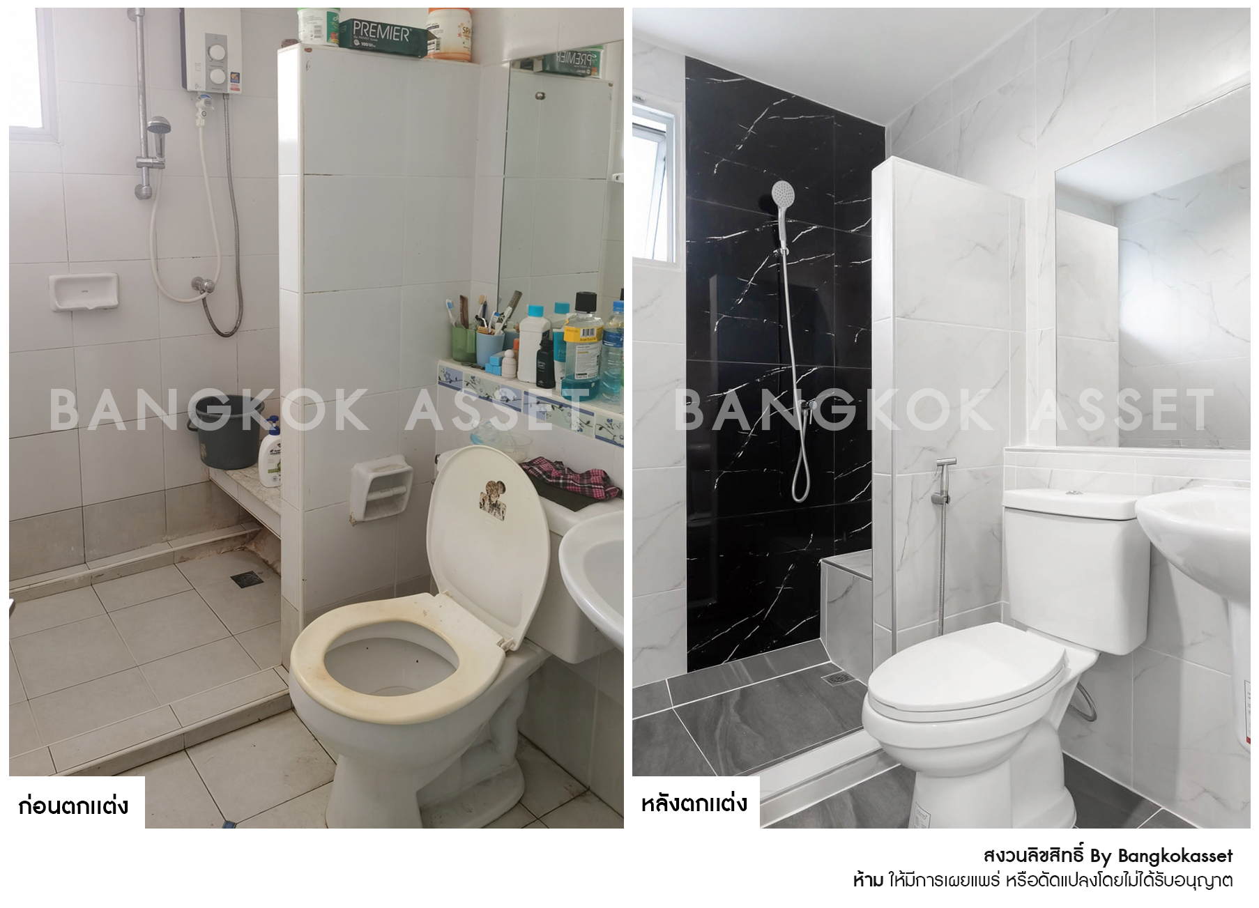 ตกแต่งสไตล์โมเดิร์น คัดสรรวัสดุคุณภาพพรีเมี่ยม เปลี่ยนสุขภัณฑ์ให้ใหม่ทั้งหมด เปลี่ยนกระเบื้องผนังใหม่ลายหินอ่อน และกระเบื้องพื้นแบบกันลื่นเพื่อความปลอดภัย