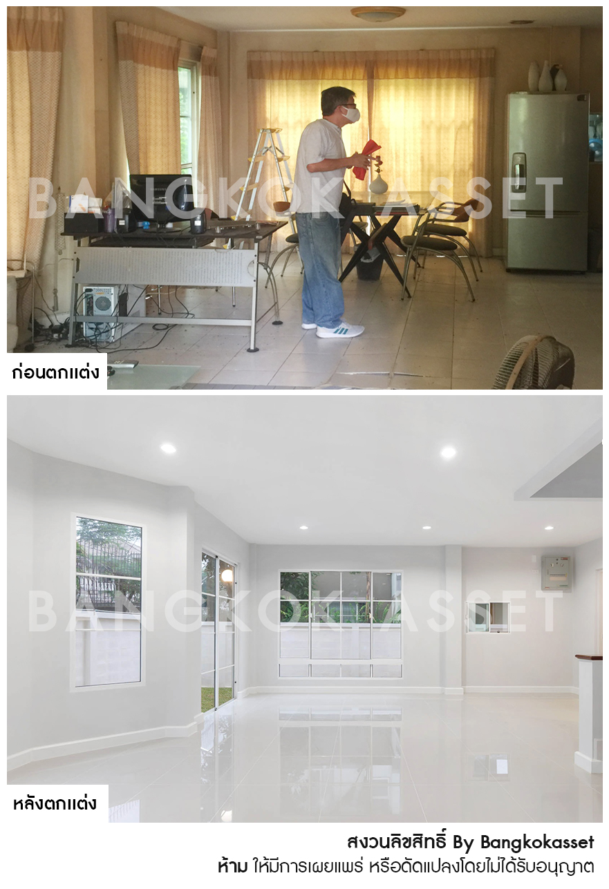 จากบ้านที่ไม่มีคนอยู่อาศัย เราได้แปลงสภาพตกแต่งใหม่ทั้งหลัง ด้วยการทาสีใหม่ให้ดูขาวสว่างยิ่งขึ้น เพิ่มความโดดเด่นให้บ้านทั้งหลัง และตกแต่งด้วยวัสดุคุณภาพ