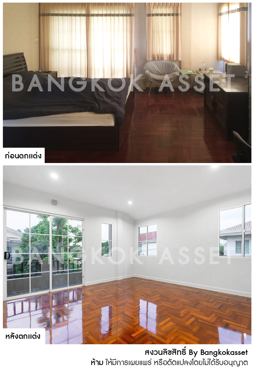 ห้องนอนทุกห้องเราเคลือบพื้นไม้ปาร์เก้ให้ดูใหม่ยิ่งขึ้น โดยคุมโทนสีภายในห้องเป็นโทนขาวสว่าง เพิ่มความรู้สึกผ่อนคลายให้กับผู้อยู่อาศัยอีกด้วย