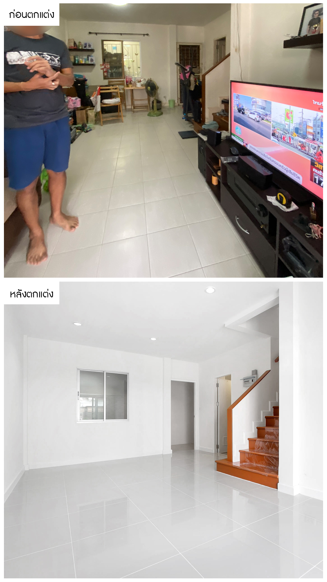 ภายในได้เปลี่ยนโทนสีใหม่ทั้งหมด โดยเน้นสีโทนขาวสว่าง ที่ให้ความรู้สึกโปร่ง กว้าง และผ่อนคลายมากขึ้น พร้อมเปลี่ยนพื้นแบบเดิมให้เป็นพื้นแกรนิตโต้แผ่นใหญ่ ที่สวยงามและนิยมใช้ในบ้านยุคใหม่ครับ พร้อมติดตั้งไฟดาวน์ไลท์ที่สว่าง ประหยัดไฟและเพิ่มมิติให้บ้านมากขึ้นครับ