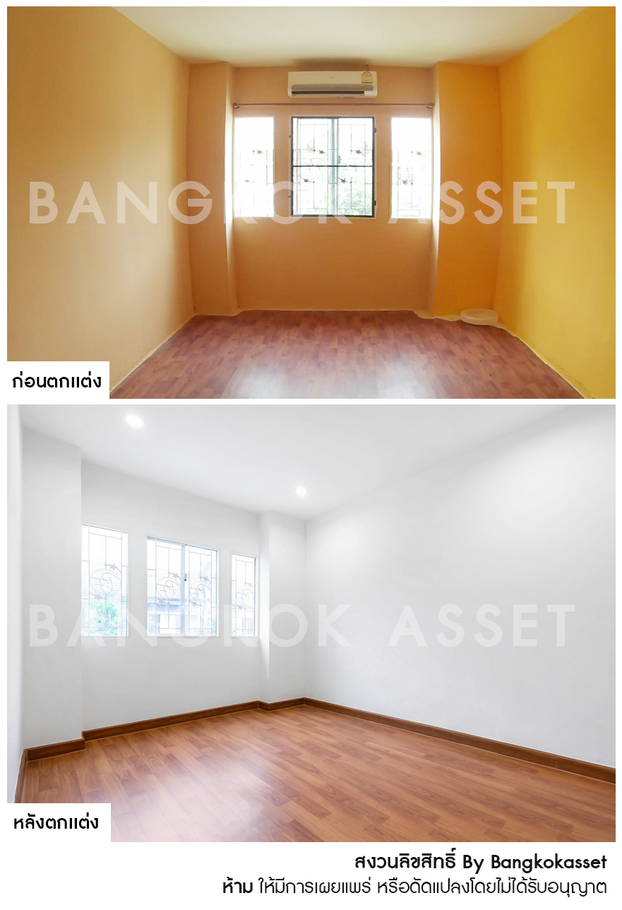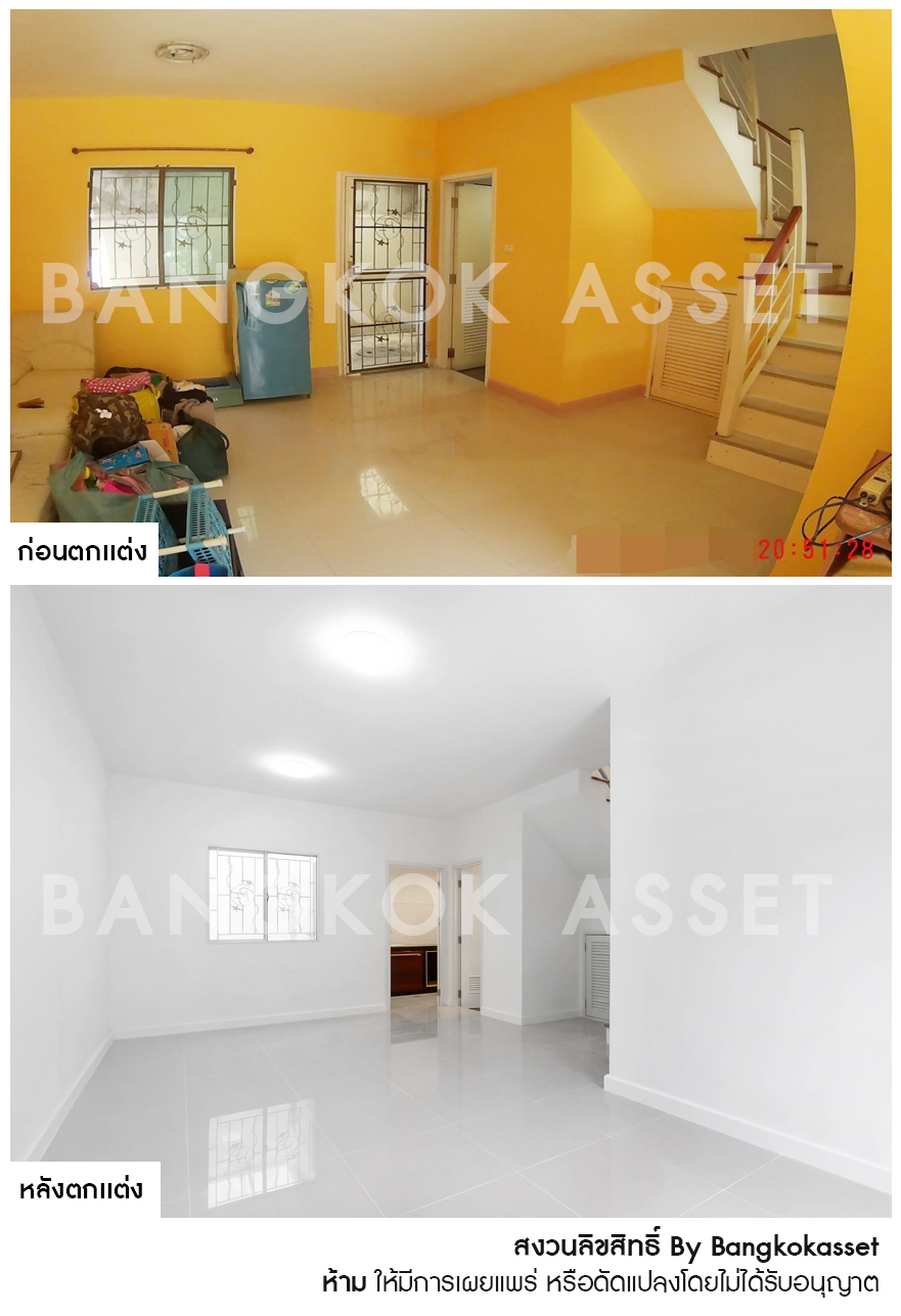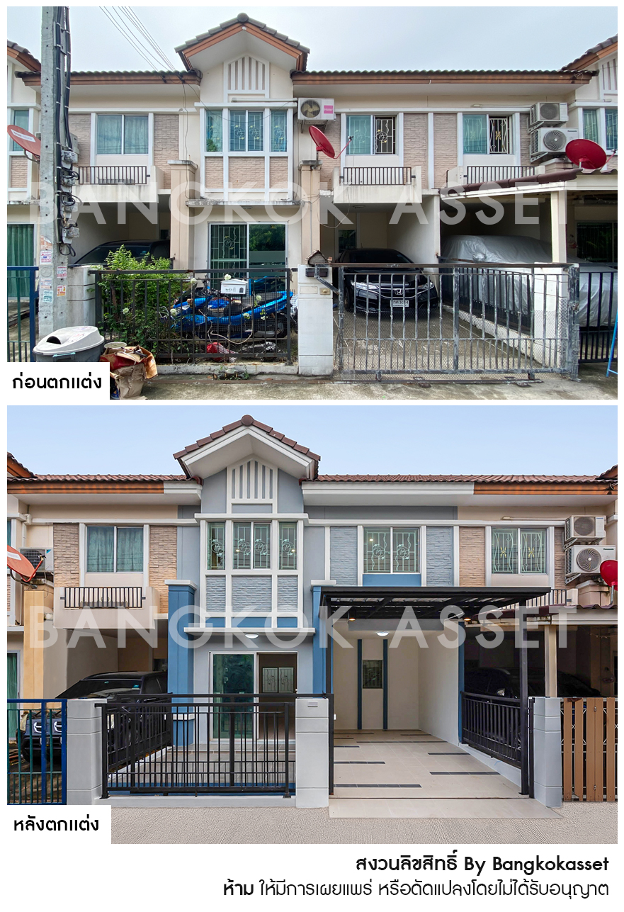 จากทาวน์โฮมหลังเก่า ได้แปลงสภาพตกแต่งใหม่ทั้งหลัง ด้วยการทาสีใหม่ให้ดูขาวสว่างยิ่งขึ้น ปูกระเบื้องกันลื่นบนพื้นที่ลานจอดรถให้ใหม่ เพิ่มหลังคาลานจอดรถแบบเมทัลชีทที่มีฉนวนกันความร้อนให้ด้วย