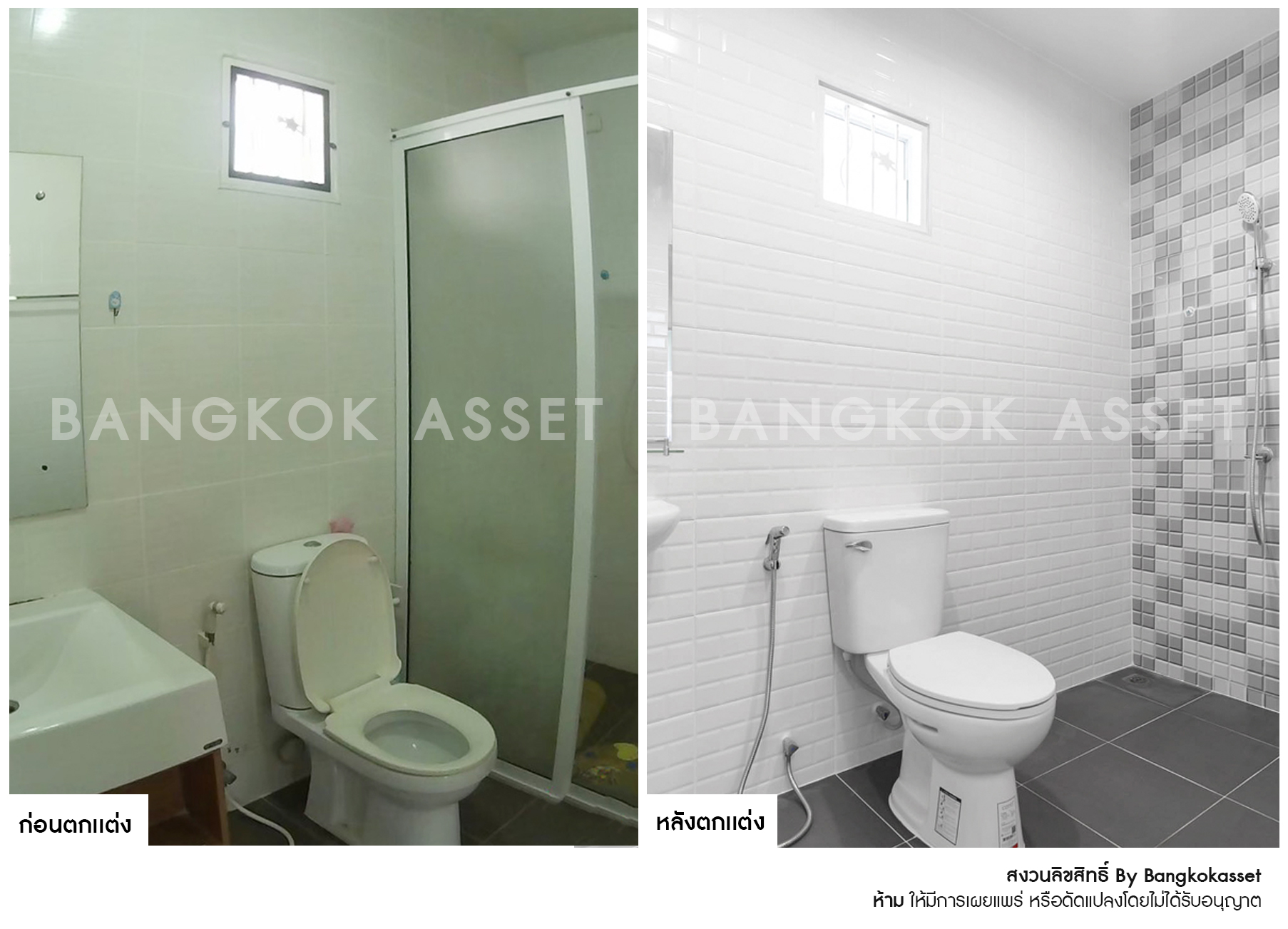 ตกแต่งสไตล์โมเดิร์น คัดสรรวัสดุคุณภาพพรีเมี่ยม เปลี่ยนสุขภัณฑ์ให้ใหม่ทั้งหมด เปลี่ยนกระเบื้องผนังใหม่ และกระเบื้องพื้นแบบกันลื่นเพื่อความปลอดภัย
