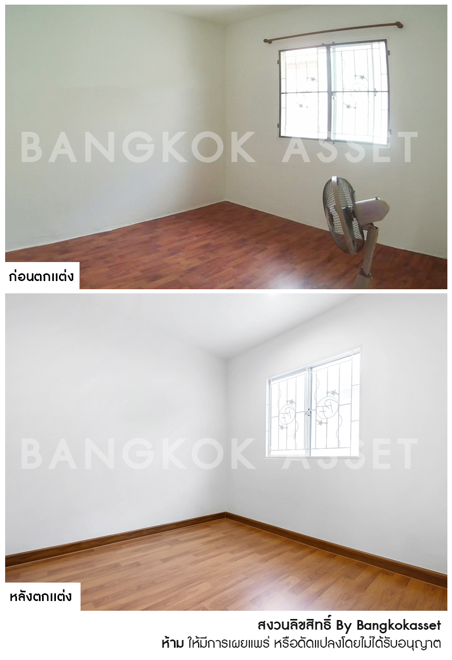 ห้องนอนทุกห้องเราเปลี่ยนเป็นพื้นลามิเนตให้ใหม่ลายไม้จริง โดยคุมโทนสีภายในห้องเป็นโทนขาวสว่าง เพิ่มความรู้สึกผ่อนคลายให้กับผู้อยู่อาศัยอีกด้วย