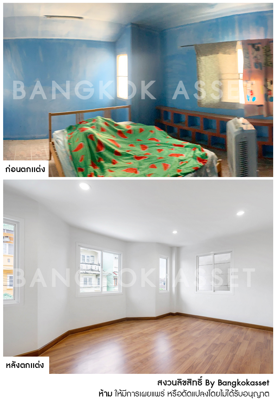 จากทาวน์โฮม 3 ชั้นที่ผนังไม่ติดกัน สภาพเก่าไปตามกาลเวลา เราได้แปลงสภาพตกแต่งใหม่ทั้งหลัง ด้วยการทาสีใหม่ให้ดูขาวสว่างยิ่งขึ้น พื้นที่ลานจอดรถเราได้ปูกระเบื้องกันลื่นที่เป็นลวดลายเฉพาะของบ้านบางกอก เปลี่ยนฝ้าให้ใหม่ และใส่ไฟดาวน์ไลท์ให้ด้วยครับ