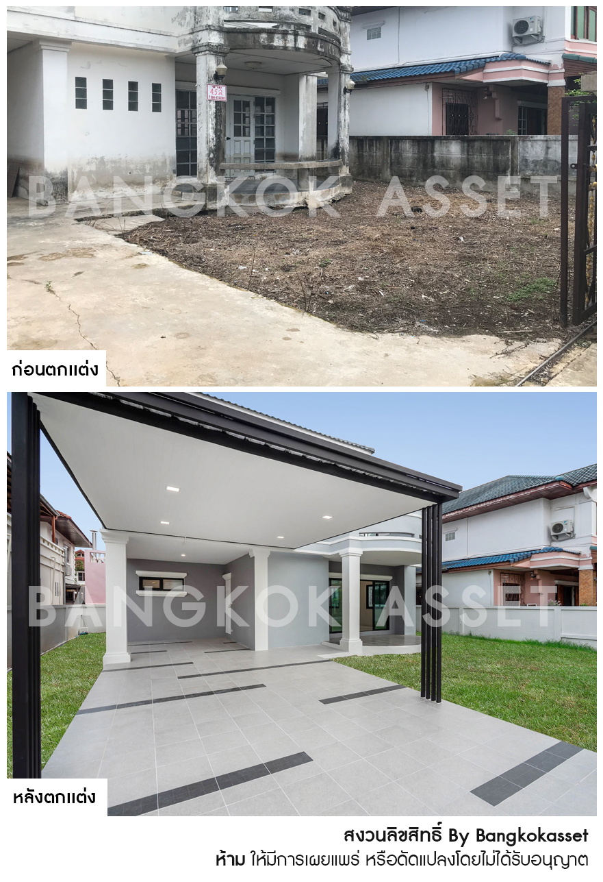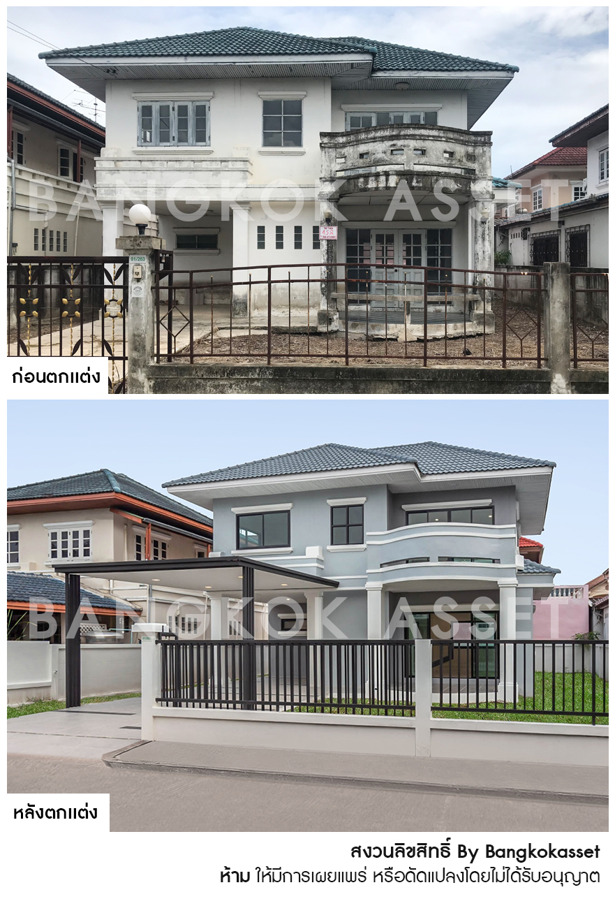 จากบ้านเดี่ยวที่สภาพเก่า มีสีที่หมองคล้ำไปตามกาลเวลา เราได้แปลงสภาพตกแต่งใหม่ทั้งหลัง ด้วยการทาสีตัวบ้าน และรั้วบ้านใหม่ทั้งหมด ทำให้ดูสดใสมากยิ่งขึ้น เพิ่มความโดดเด่นให้บ้านทั้งหลัง พร้อมตกแต่งด้วยวัสดุคุณภาพ
