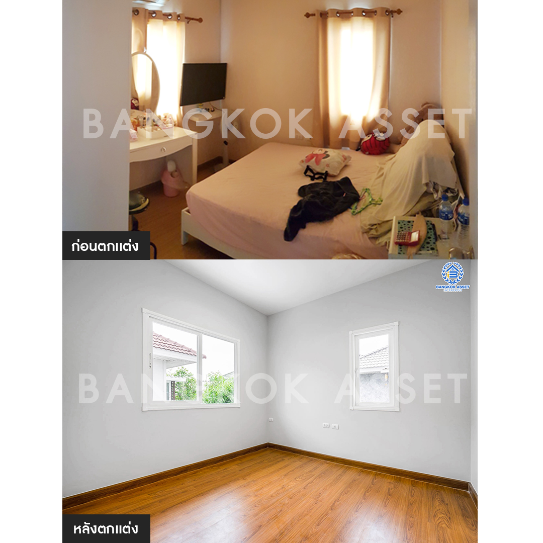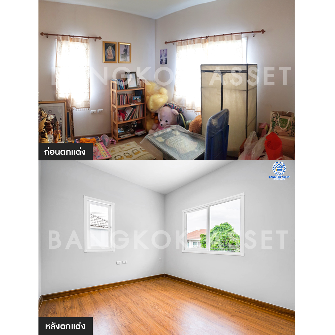ห้องนอนทุกห้องเราเปลี่ยนเป็นพื้นไม้ลามิเนตลายเหมือนไม้จริง ดูอบอุ่น สบาย มีความหนา และแข็งแรงมากยิ่งขึ้น โดยคุมโทนสีภายในห้องเป็นโทนขาวสว่าง เพิ่มความรู้สึกผ่อนคลายให้กับผู้อยู่อาศัยอีกด้วย