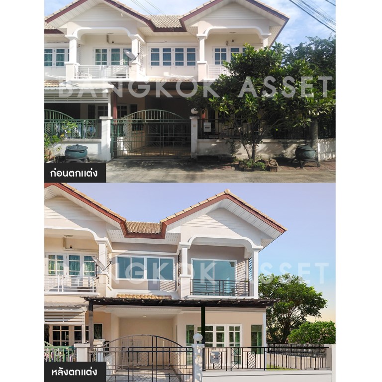 เราได้แปลงสภาพตกแต่งด้วยวัสดุคุณอย่างดี โดยการทาสีใหม่ทั้งหลัง ปรับเปลี่ยนพื้นที่ลานจอดรถ ด้วยการปูกระเบื้องกันลื่นที่เป็นลวดลายเฉพาะของบ้านบางกอก และหลังคาเปลี่ยนเป็นแบบเมทัลชีท ที่มีฉนวนกันความร้อนช่วยลดความร้อน และเสียงได้