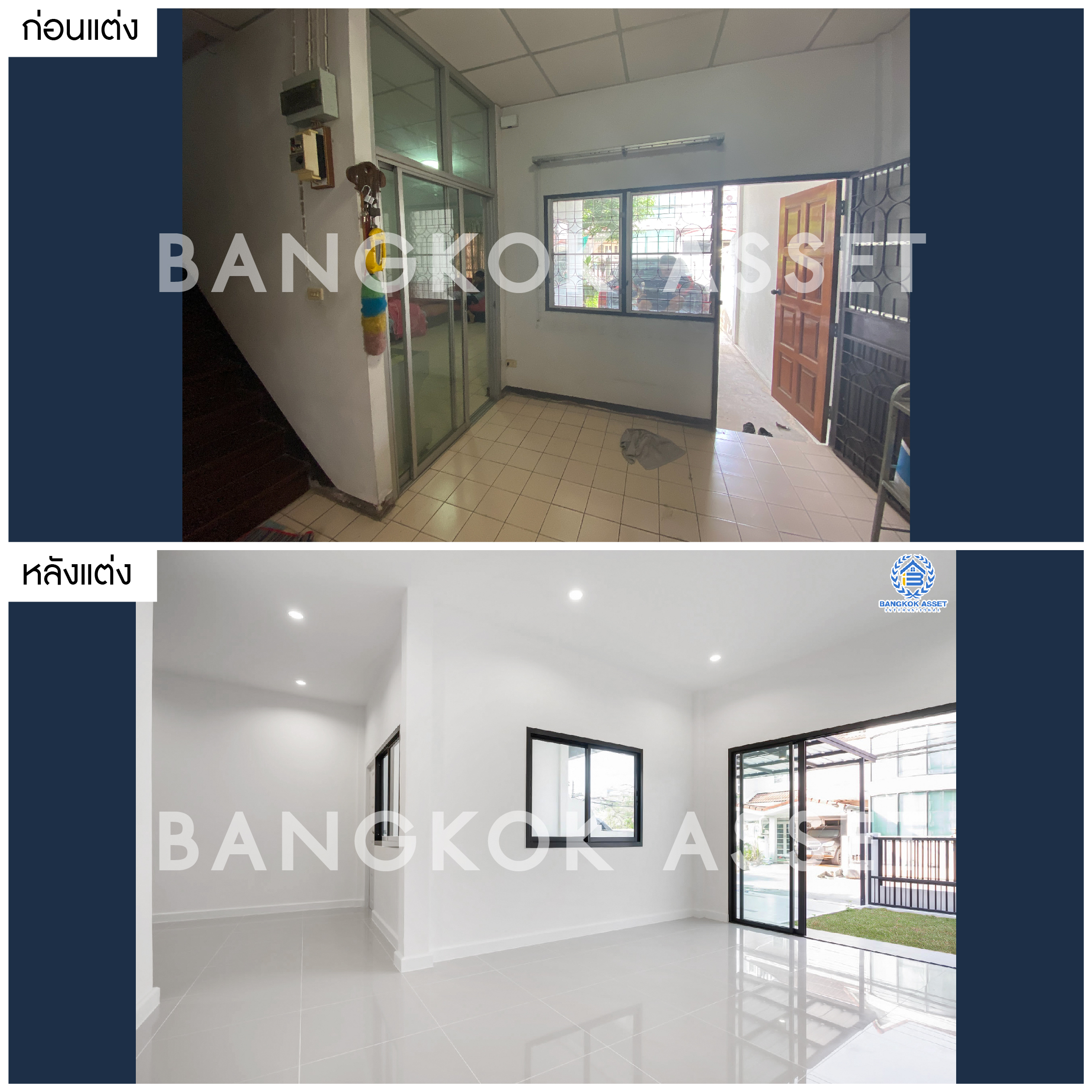 เราได้เปลี่ยนโฉมให้ทาวน์เฮ้าส์เก่า กลับมาเหมือนใหม่สไตล์โมเดิร์นได้ครับ ถ้าฝากขายบ้านกับเราจะได้บ้านดีไซน์อัพเดททันสมัย พร้อมขายออกไวแน่นอน ด้วยบริการรีโนเวทบ้านก่อนขายจากมืออาชีพ มาดูภาพก่อน และหลังรีโนเวทครั้งนี้กันว่าจะเปลี่ยนแปลงไปมากขนาดไหน