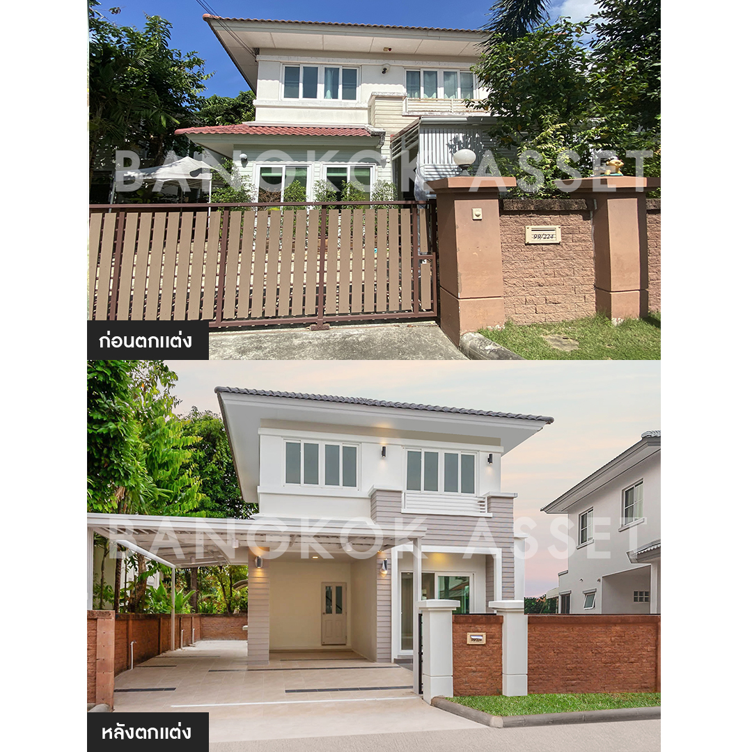 จากบ้านหลังเดิมๆ เราได้ตกแต่งด้วยวัสดุคุณภาพใหม่ทั้งหลัง ด้วยการทาสีใหม่ให้ดูขาวสว่างยิ่งขึ้น เพิ่มความโดดเด่นให้บ้านทั้งหลัง พร้อมปรับเปลี่ยนพื้นที่ลานจอดรถ ด้วยการปูกระเบื้องกันลื่น และติดตั้งหลังคาเมทัลชีท ที่มีฉนวนกันความร้อนให้ด้วย