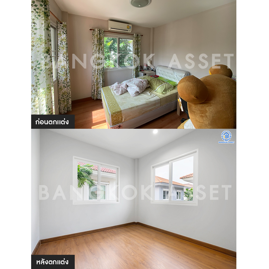 ห้องนอนทุกห้องเราเปลี่ยนเป็นพื้นลามิเนตให้ใหม่ทั้งหมด ให้ความสวยงามคงทนและนิยมใช้ในบ้านยุคใหม่ โดยคุมโทนสีภายในห้องเป็นโทนขาวสว่าง เพิ่มความรู้สึกผ่อนคลายให้กับผู้อยู่อาศัยอีกด้วย