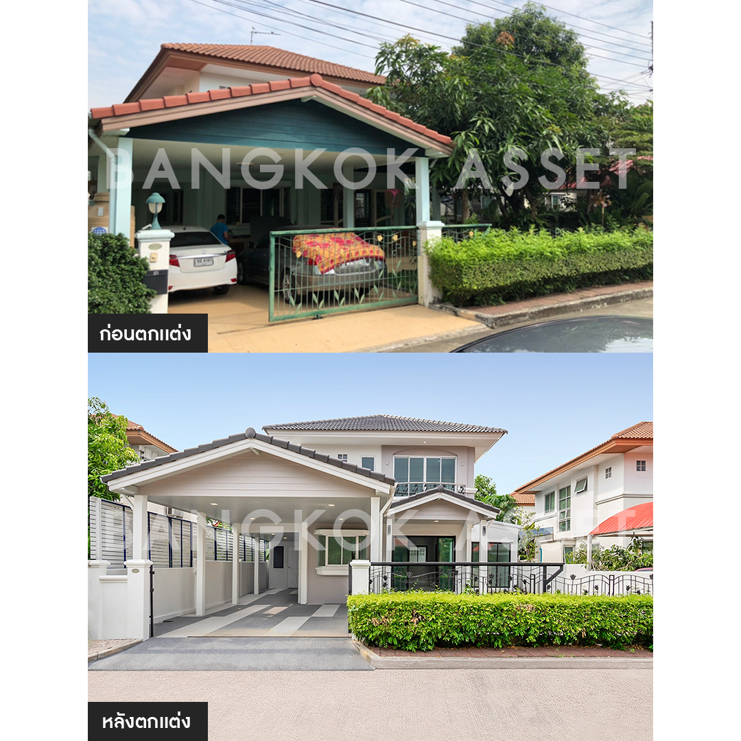 เราได้แปลงสภาพตกแต่งใหม่ พร้อมเปลี่ยนวัสดุคุณภาพอย่างดีทั้งหลัง รวมทั้งการทาสีใหม่ และยังปรับเปลี่ยนพื้นที่ลานจอดรถ ด้วยการปูกระเบื้องกันลื่นที่เป็นลวดลายเฉพาะของบ้านบางกอก